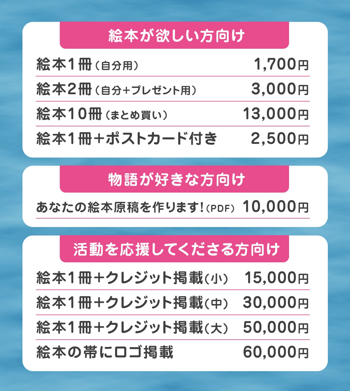 今回の絵本は出版社との共同出版。ご支援頂いた金額は出版費用とイラストレーターへの人件費に充てさせて頂きます。