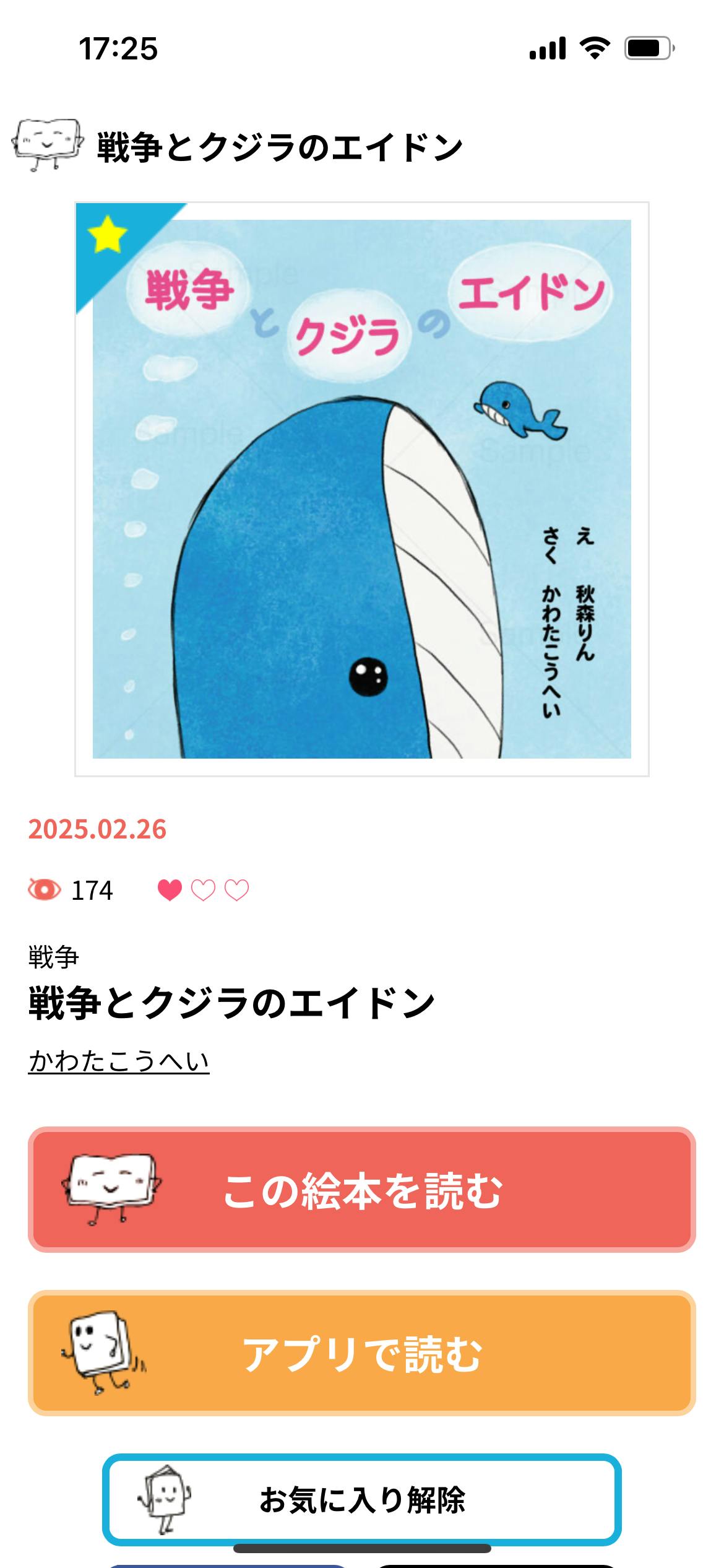 今日、絵本ひろばを見たところ、戦争とクジラのエイドンが174回も閲覧されていました。見てくれて嬉しいです。もっともっと見て欲しいです。下記にURLも貼っておきます。https://ehon.alphapolis.co.jp/content/list?keyword=%E3%82%AF%E3%82%B8%E3%83%A9%E3%81%AE%E3%82%A8%E3%82%A4%E3%83%89%E3%83%B3