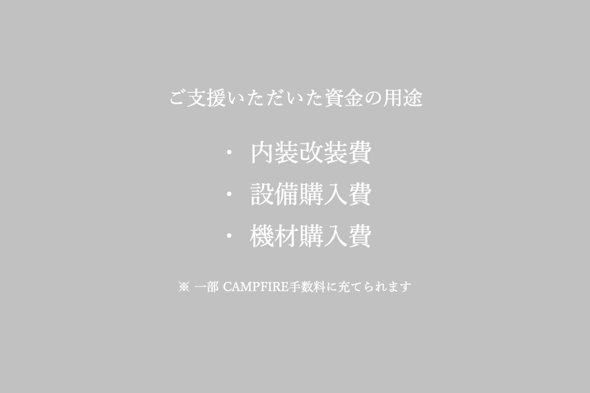 クラウドファンディングでご支援いただいた資金は、「UNION」のテーマである「飲・食・音」のイベント運営に必要な、内装改装費、設備購入費、機材購入費、CAMPFIRE手数料に充てさせていただきます。