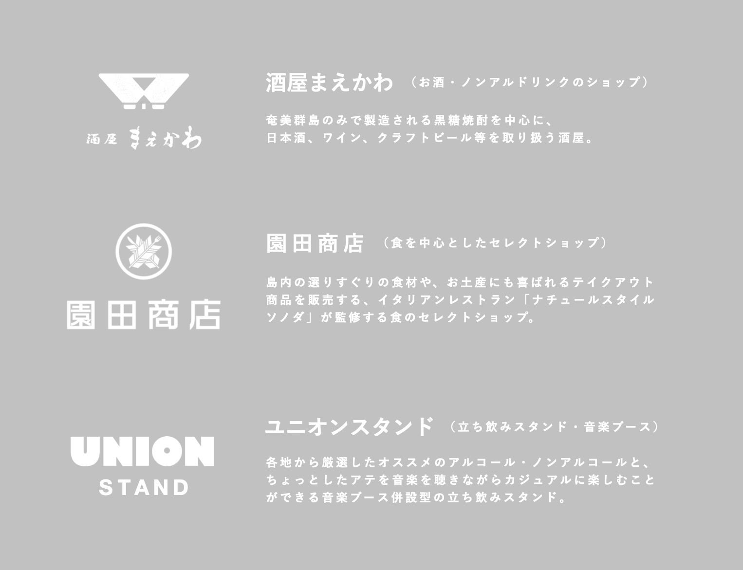 奄美群島のみで製造される黒糖焼酎を中心に、日本酒、ワイン、クラフトビール等を取り扱う酒屋。UNIONでは、焼酎マイスターが厳選した黒糖焼酎を試飲でき、今後購入することも可能です。また、蔵元さんを招いてのイベントやワークショップ・新商品発表会も企画していく予定です。