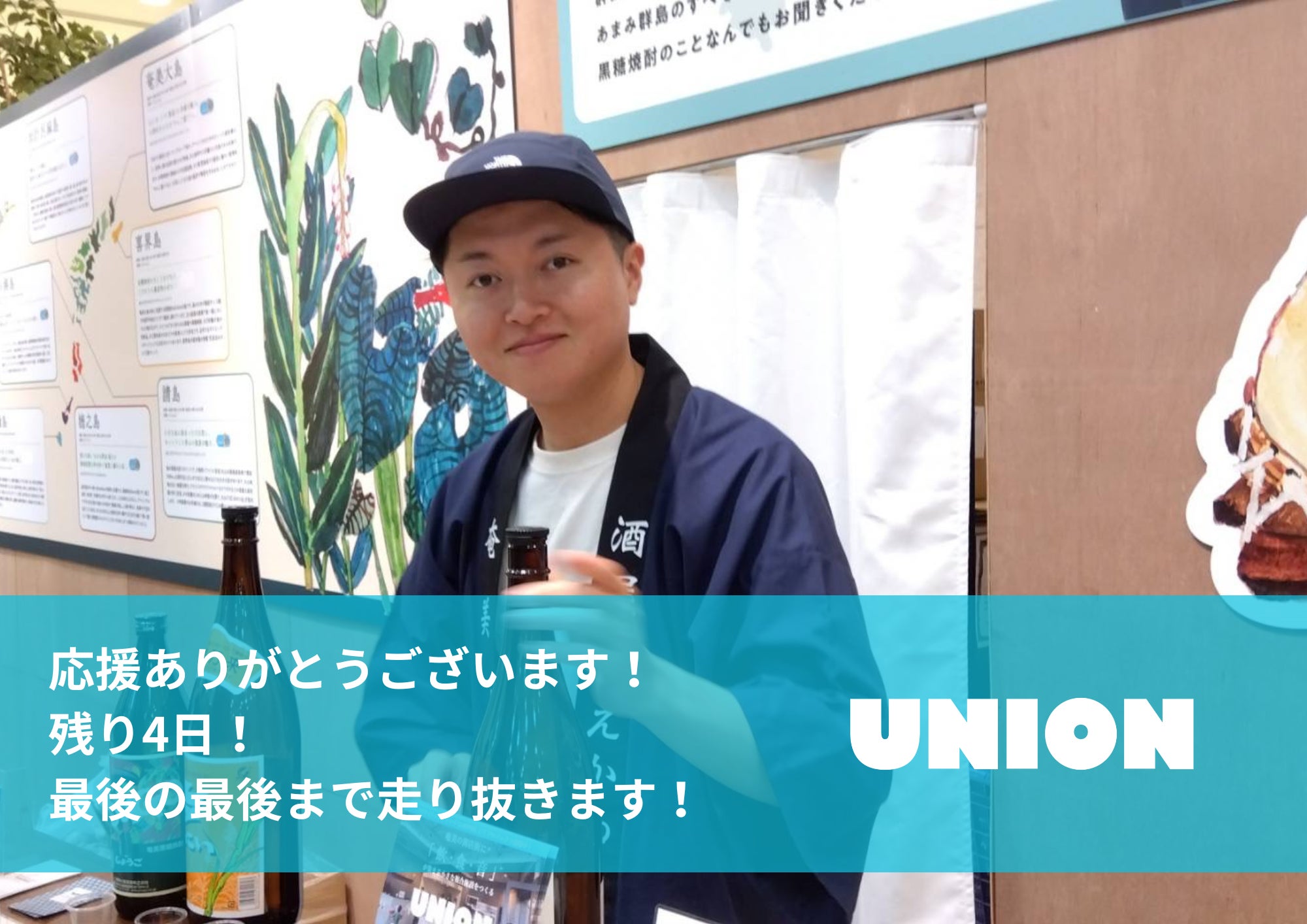 2025/03/11 11:291月24日から始めたUNIONでの黒糖焼酎&商店街をテーマにしたクラウドファウンディングは昨日終了いたしました。お陰様で130%以上のご支援をいただき、達成することができました。ご支援いただいた方々、普段から酒屋まえかわやUNIONを支えていただいている方々のおかげです。クラファンでの挑戦は昨日で一区切りになりますが、ここからもまだまだ挑戦の道のりが待っています。今回のご支援を活用していき、さらなる店舗の強化を図り、幅広い世代、様々な方々に楽しんでいただける店づくりを行なっていきます。引き続き、酒屋まえかわ&UNION(園田商店、UNION STAND)をよろしくお願いいたします!ありがとうございました!!前川健悟 もっと見る3月4日開催の「島酒のもうでぃ」盛況でした!