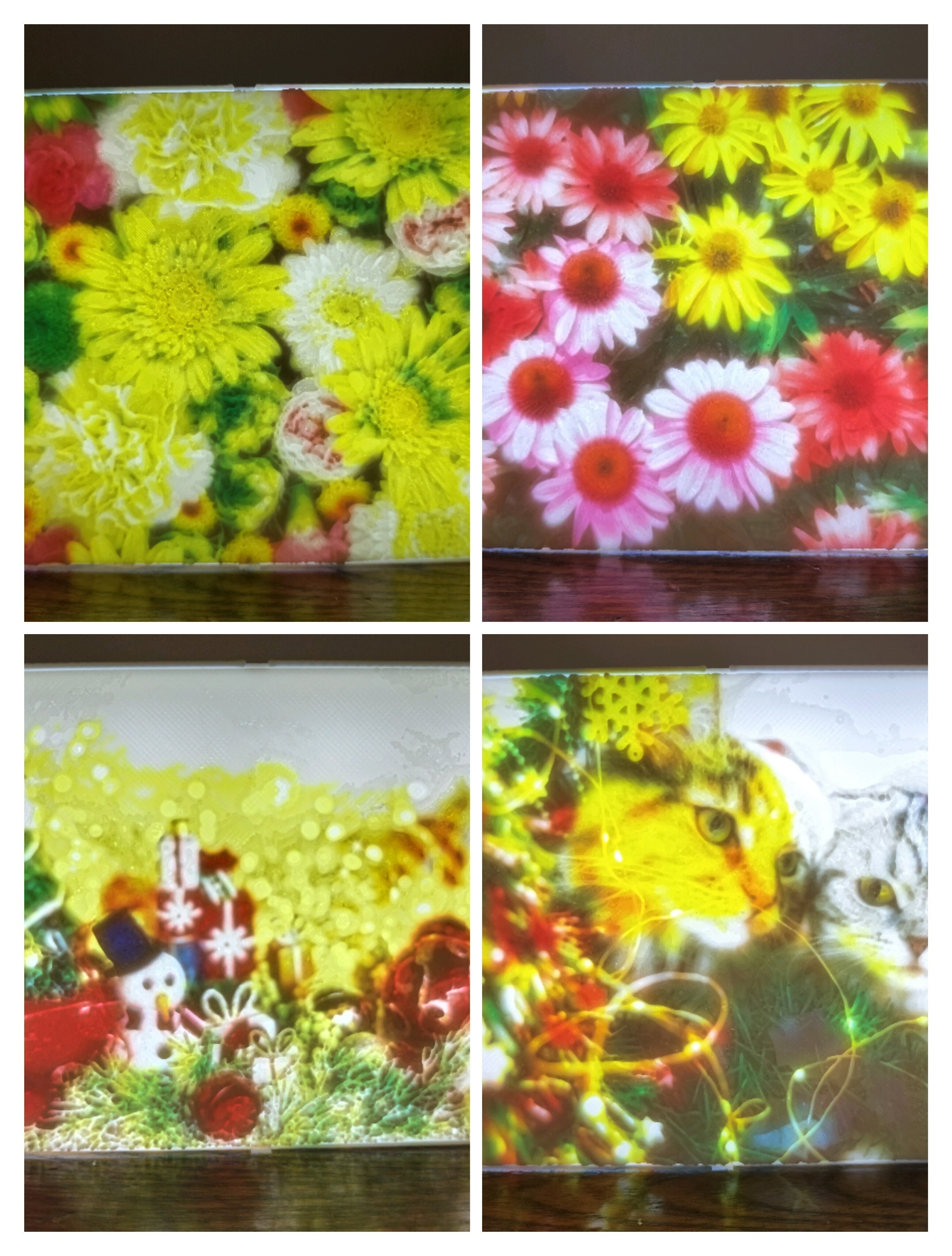 解像度は写真に比べれば低いし厚みの制約から色の種類も限られてきますが3dプリンタでしかできない味だと思っております。