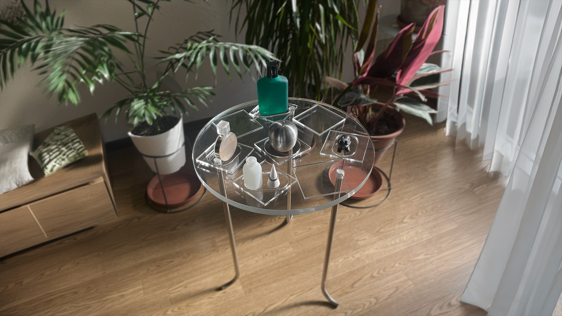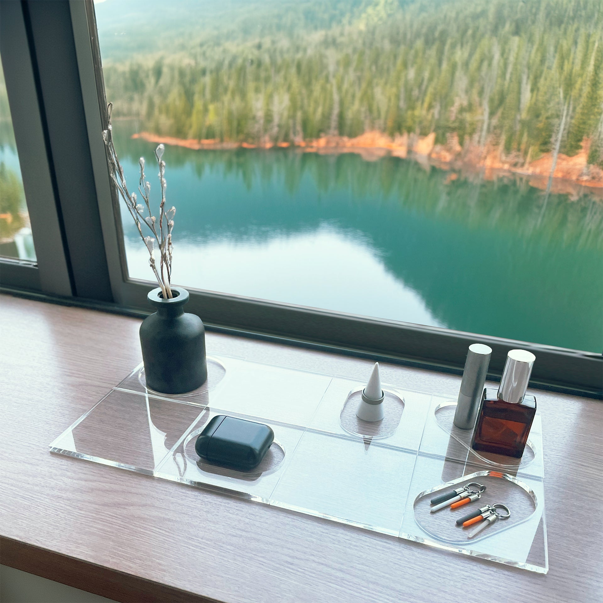 穴の開いた部分にお気に入りの物を置き定位置を与える事で、展示しているかの様に美しく魅せる事が出来ます。