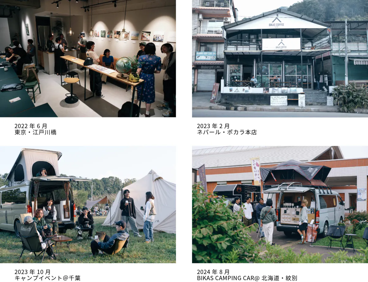 2021年、東京・江戸川橋に実店舗をオープン、2022年にはネパール・ポカラに本店をオープン(現在は閉業)、そして2024年には全国で移動販売が可能なキャンピングカーをつくり、国内外問わず様々な場所でハルパン村のコーヒーを届けてきました。