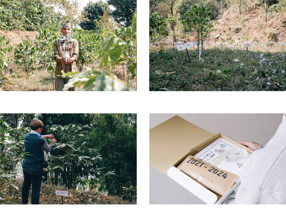 また、2021年からハルパン村のコーヒー農園に自分のコーヒーの木を植えて、3年後に収穫したコーヒーが届く「コーヒー植樹プロジェクト」も行っており、過去4年間で合計470本の植樹を実現。自分のコーヒーを育てて飲むことで、森をつくる【新しいコーヒーの楽しみ方】も届けてまいりました。