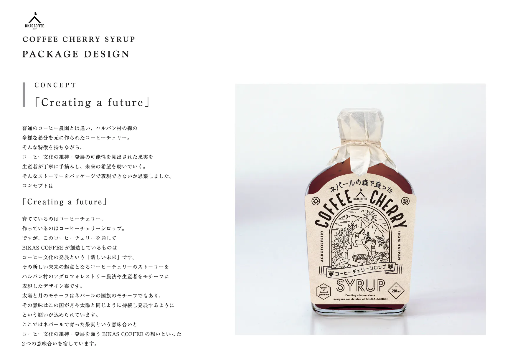 今後も、私たちはネパール・ハルパン村と共に、新しい可能性を広げるモノづくりを実現していくことを約束するとともに、第一弾の新商品として「BIKAS COFFEEのチェリーシロップ」を発表します。