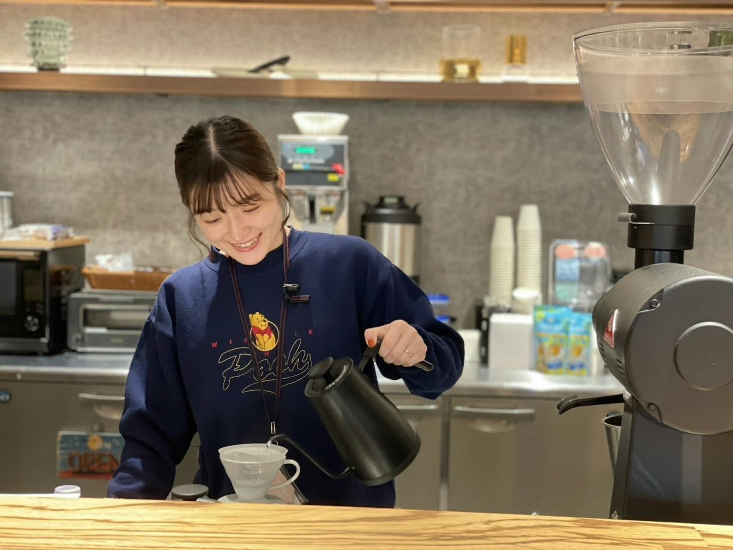 ご来店されるお客様はコーヒーを飲むためだけではなく、さおりさんとのお話を楽しみにされている方もたくさんいらっしゃいます。さおりさんとの会話の中で笑顔になって帰るお客様をたくさん見てきました。さおりさん自身大好きなコーヒーでお客様により喜んでもらえるよう毎日真剣にコーヒーにストイックに向き合っています。そんなさおりさんが作り上げるコーヒースタンドが今から楽しみです!応援してます!