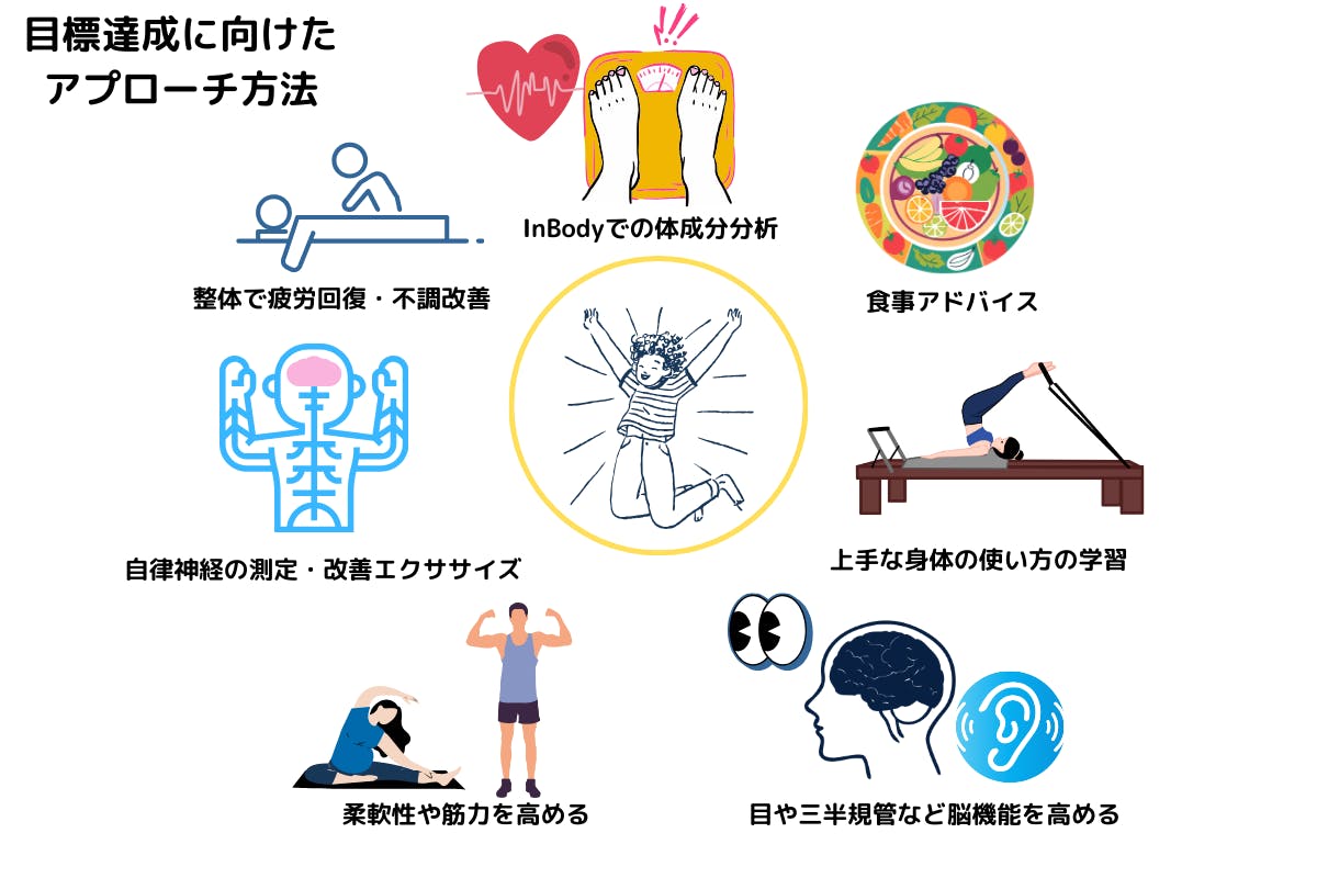 これらは別々のアプローチやエクササイズに見えますが実は繋がりがあり、失った身体機能を取り戻していくことで相乗効果が生まれ、不調の改善・予防、スポーツパフォマンスの向上、メンタルの回復に拍車をかけていきます。