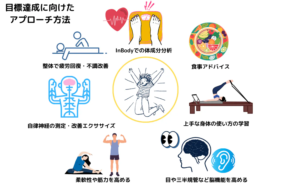 最近増えた、整体×ジムのような専門ジムではなくいろんなことができるジムの方がより早くゴールに辿り着き、たくさんの方の悩みを解決できます。もちろん僕も整体やほぐしの技術も活用していますし整体コースもご用意いたします。