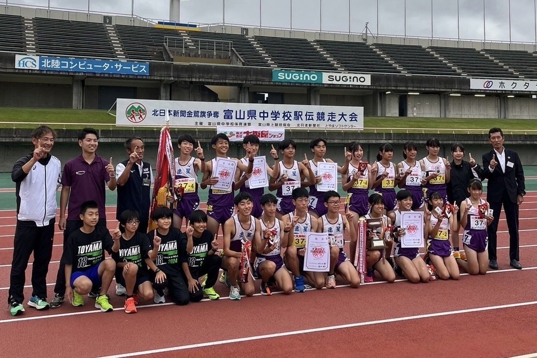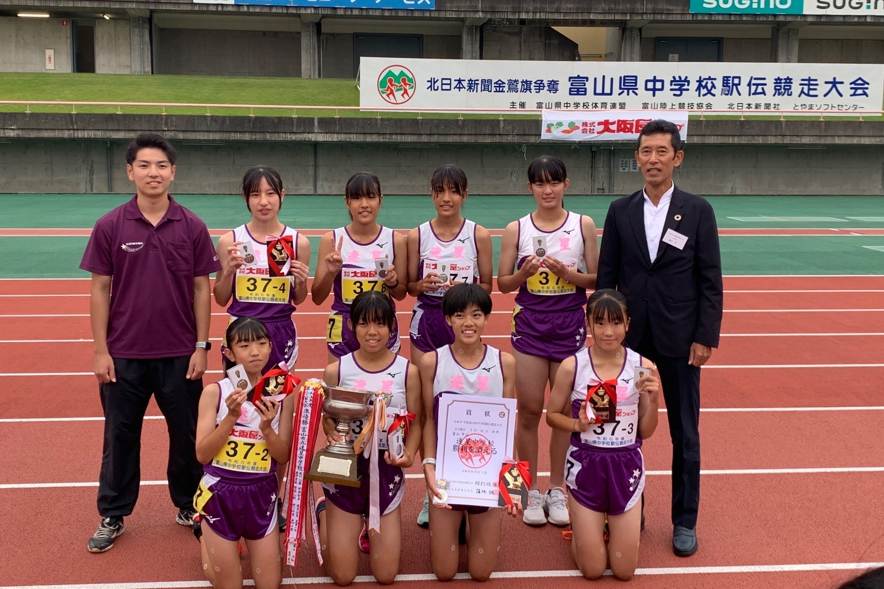 速星中学校駅伝部は、令和6年度富山県中学校駅伝競走大会において男子が16年ぶり3度目の優勝を果たし、女子も2年連続2位という素晴らしい成績を収めました。この結果は、選手たちの頑張りはもちろんのこと、顧問の先生方や学校、家族、そしてなにより地域の皆様のサポートと応援が実を結んだものであると実感しています。