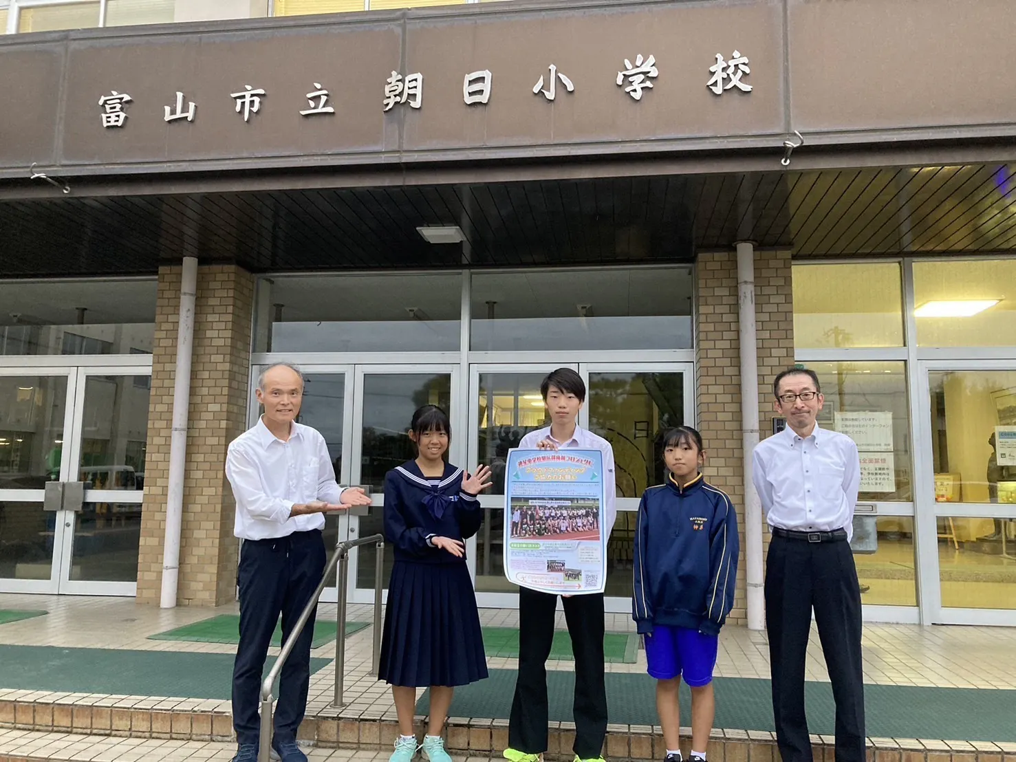 本日は駅伝部の山崎くん(3年)、此川さん(3年)、神原さん(1年)の母校である朝日小学校を訪問しました。