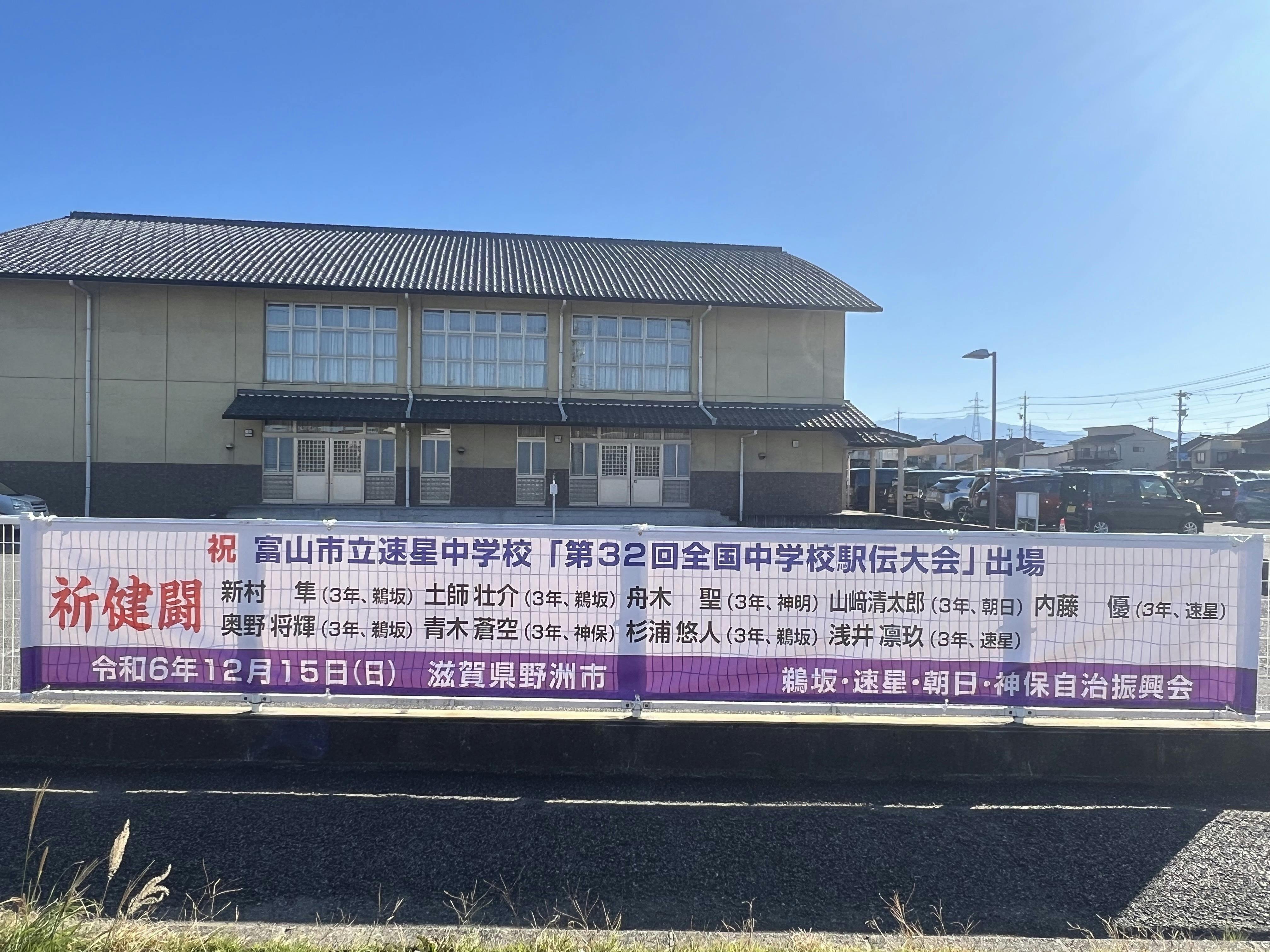 速星公民館にて全国中学駅伝大会の横断幕が掲示されていました。