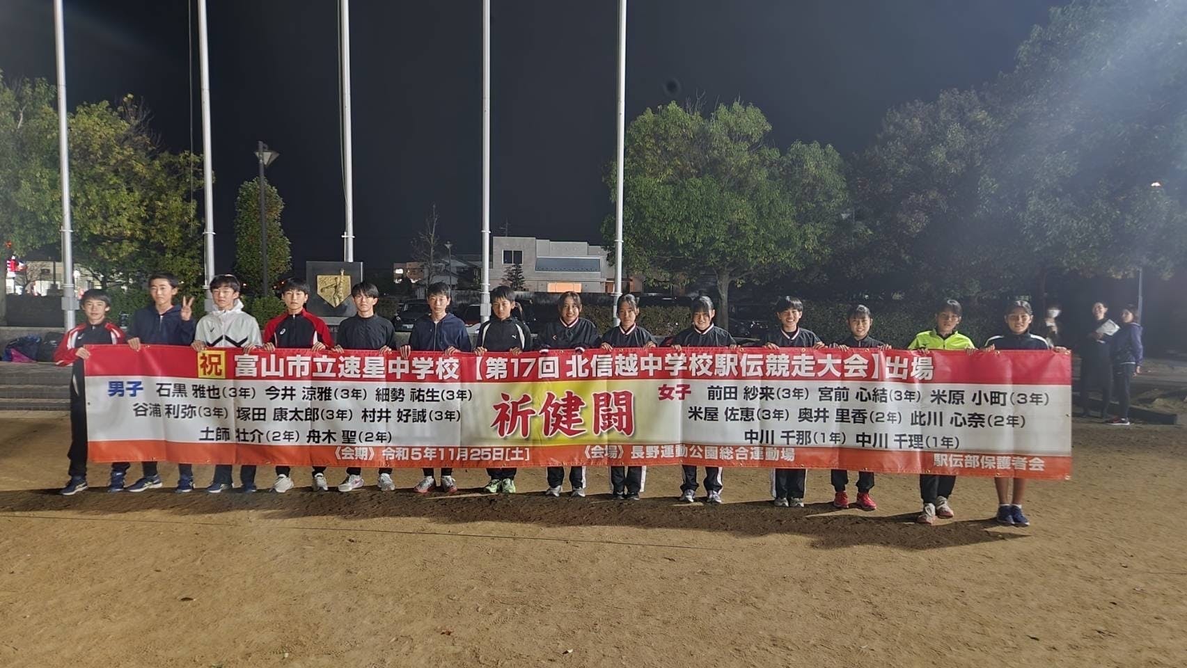 ☆試合の日、応援に行きましたが、男女ともなかなかの走りで最高でした。特に女子は去年よりタイムを大幅に縮め、来年は全国期待してます。男子は全国大会、北信越大会、女子は北信越大会、めちゃめちゃ楽しんで来てくださいね!めっちゃ応援してます。ちなみにうちの子はバスケに頑張ってまーす!