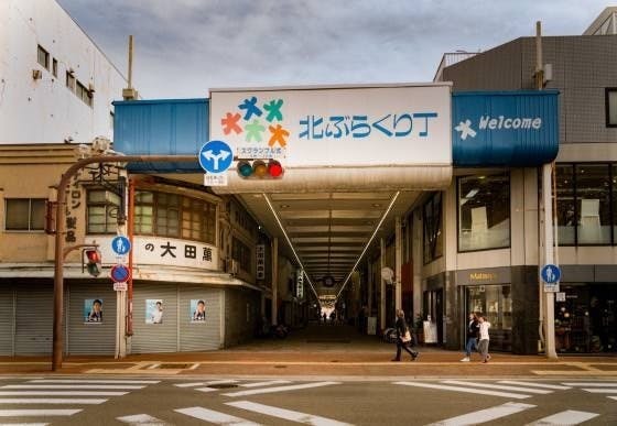 北ブラクリ丁商店街を通り抜けると、昔は多くの人が訪れ活気があったのを感じられますが、今ではほぼすべての店がシャッターで閉められ、ほんの数人しか歩いていません。