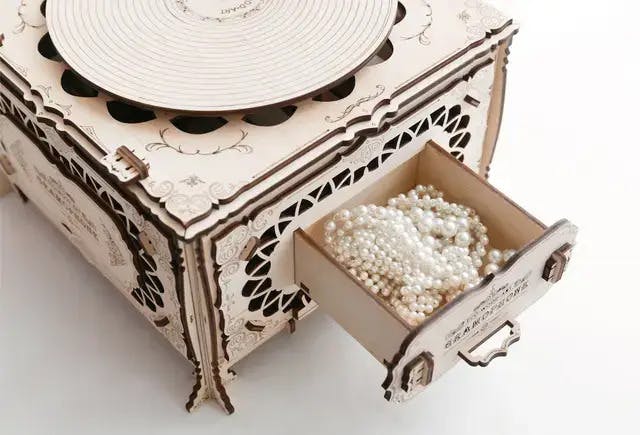 ジュエリーボックスがアクセサリーや小物の収納場所として、実用性と装飾性を兼ね備えています。