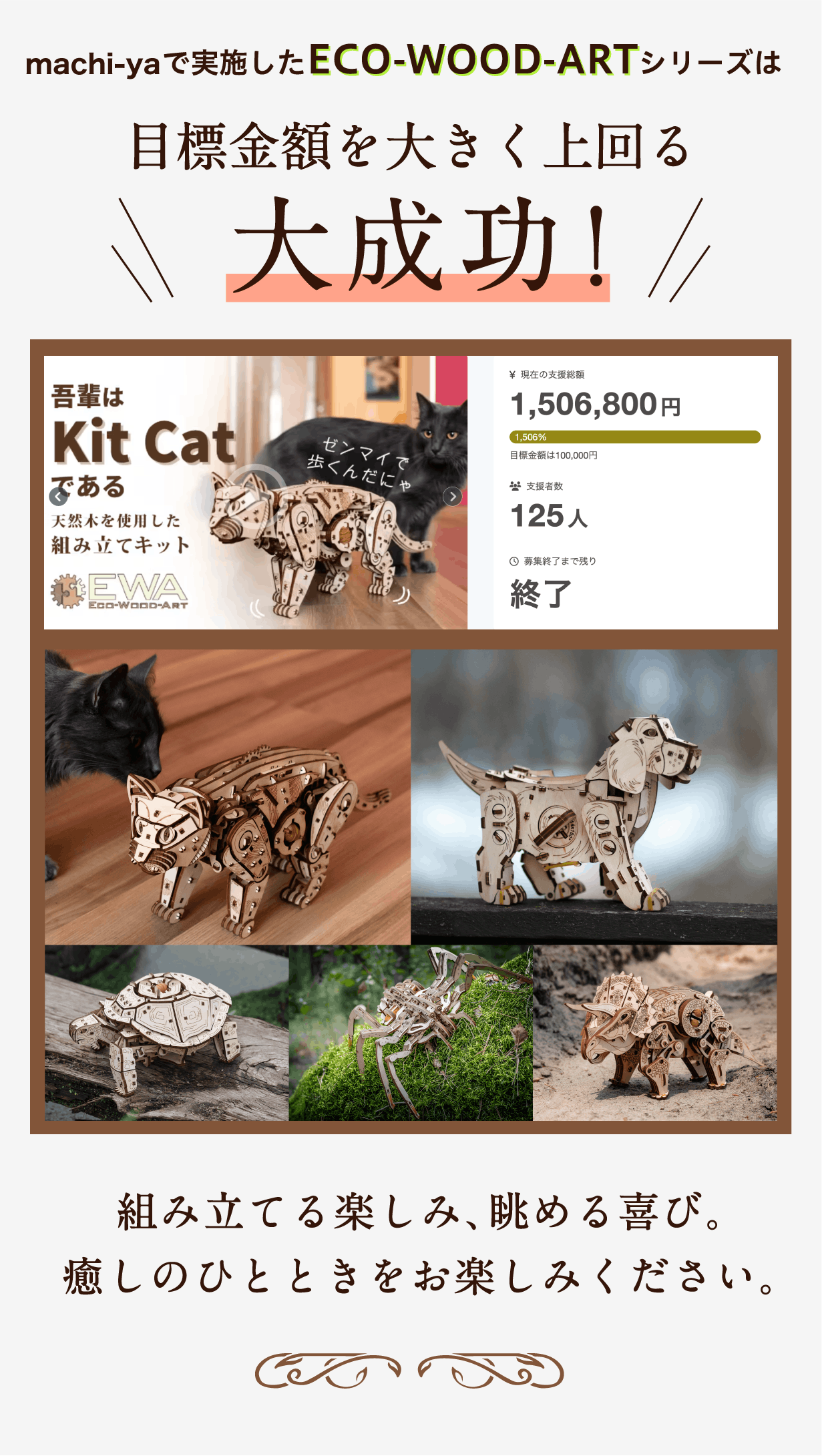 ※リターン品の配送が完了するまで、Free Spirit株式会社はEWA Eco-Wood-Artの日本における独占販売権を有する正規代理店です。