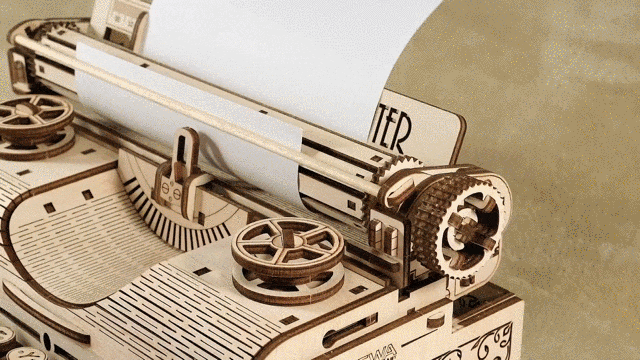 キーを押すと心地良い音とともに各パーツが精密に連動し、まるで実際に文字を打っているかのようなリアルな感覚が得られます。