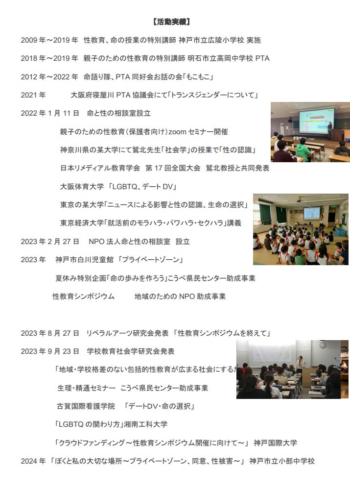 皆さまの温かいご支援をいただき、未来を生きる子供たちに「正しい知識」と「守る力」を届けるお手伝いをしていただければ幸いです。