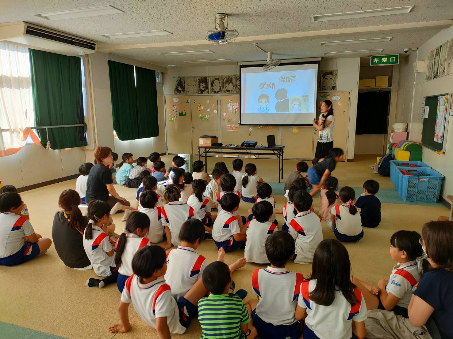 この紙芝居は参加型で、いろんな問題について一緒に考える事を行い、自分の心と身体を守れるように「ダメ・嫌」が言えるように練習し、行動にすぐに移すことができるようになります。