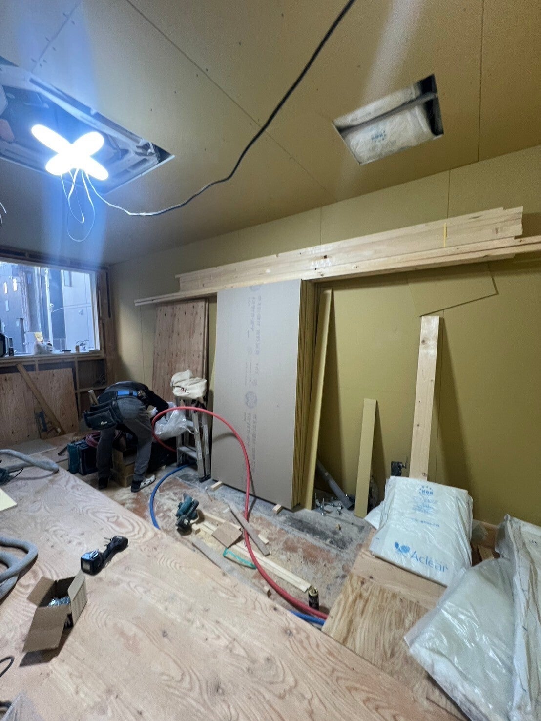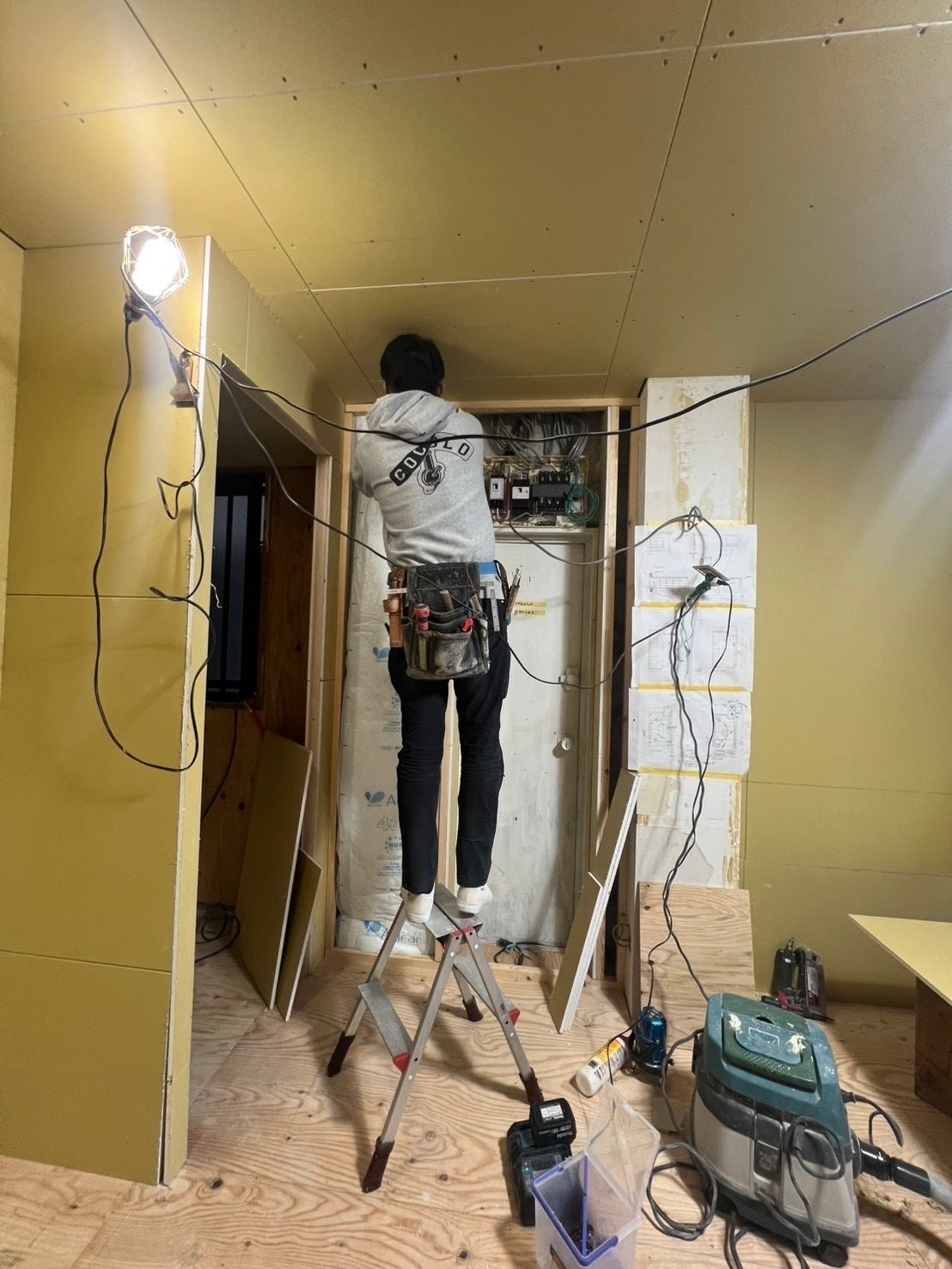 壁と天井の素地ができておりました。隠し扉にしちゃったりして。