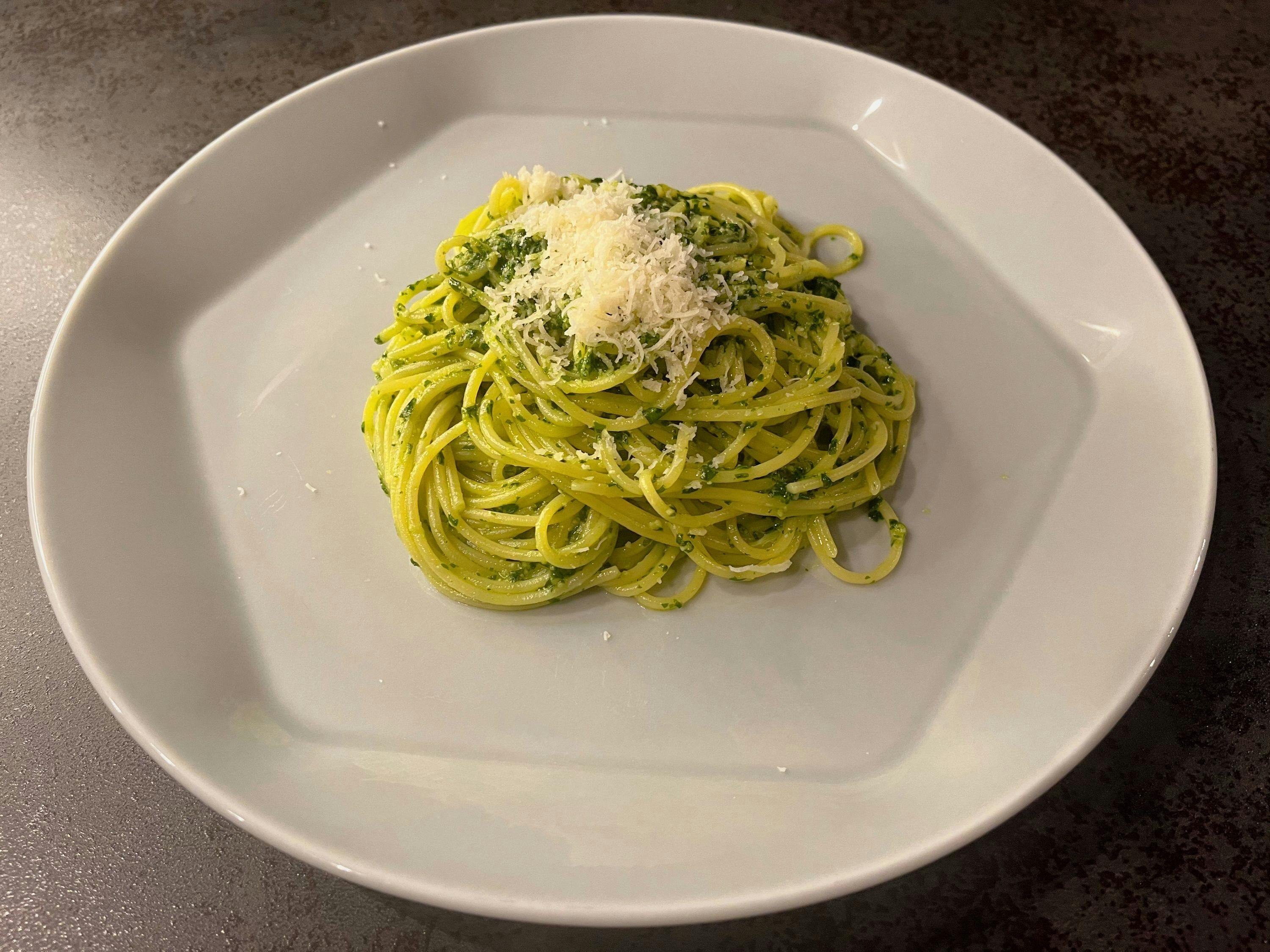 ジェノベーゼは、フレッシュなバジルを使っております。チーズやナッツ類とのバランスにこだわり、濃厚なソースに仕上げました!