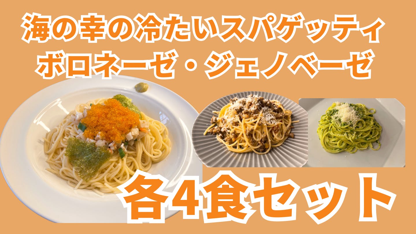 ▼海の幸の冷たいスパゲッティ・ボロネーゼ・ジェノベーゼ 各4食セット 18,000円