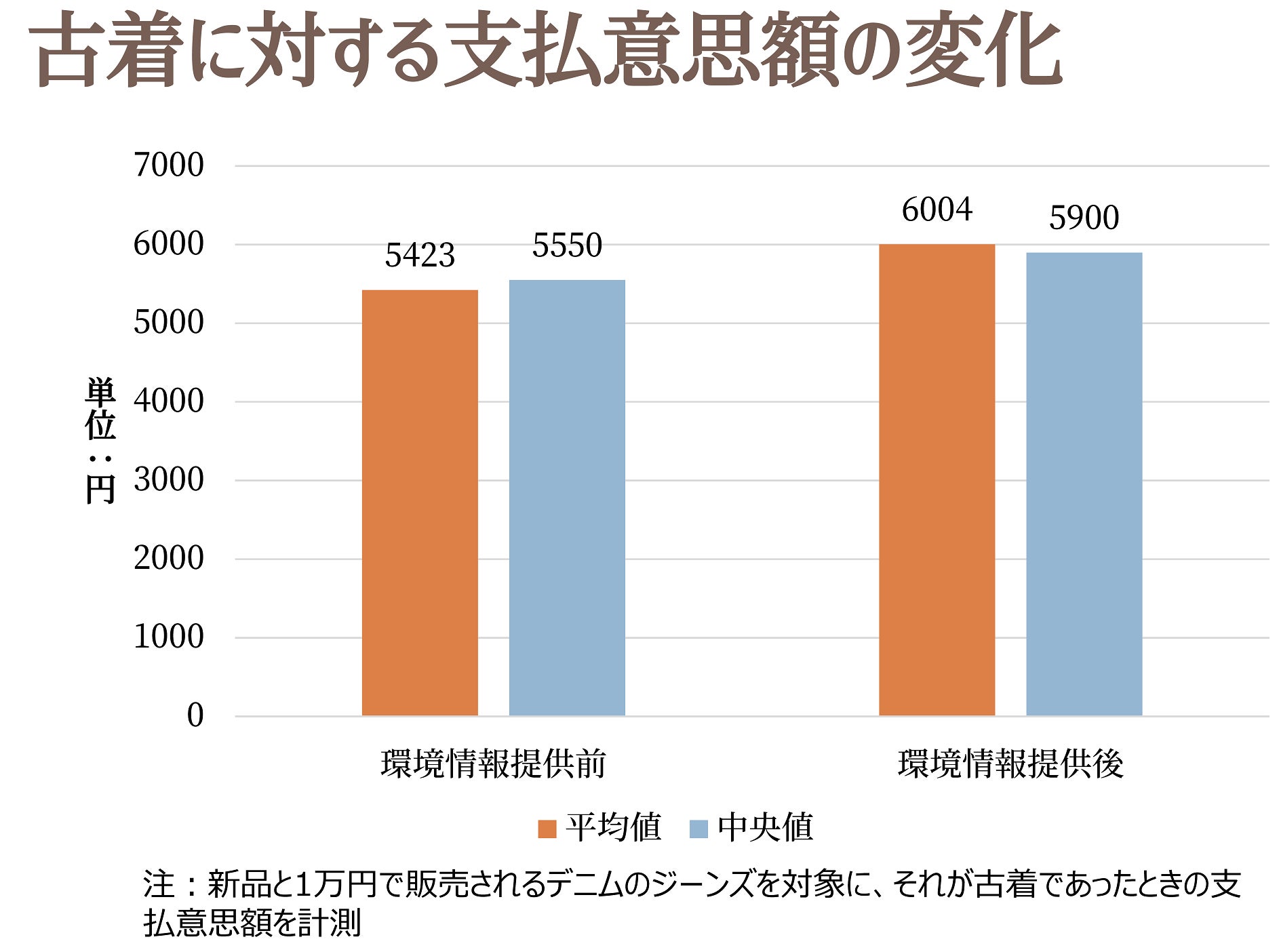 その結果、ファッション産業が引き起こす環境負荷の大きさを人々に伝えることで、古着のデニムのジーンズに対する支払意思額(最大支払っても良いと思う金額)が約10.7%上昇することを導きました。