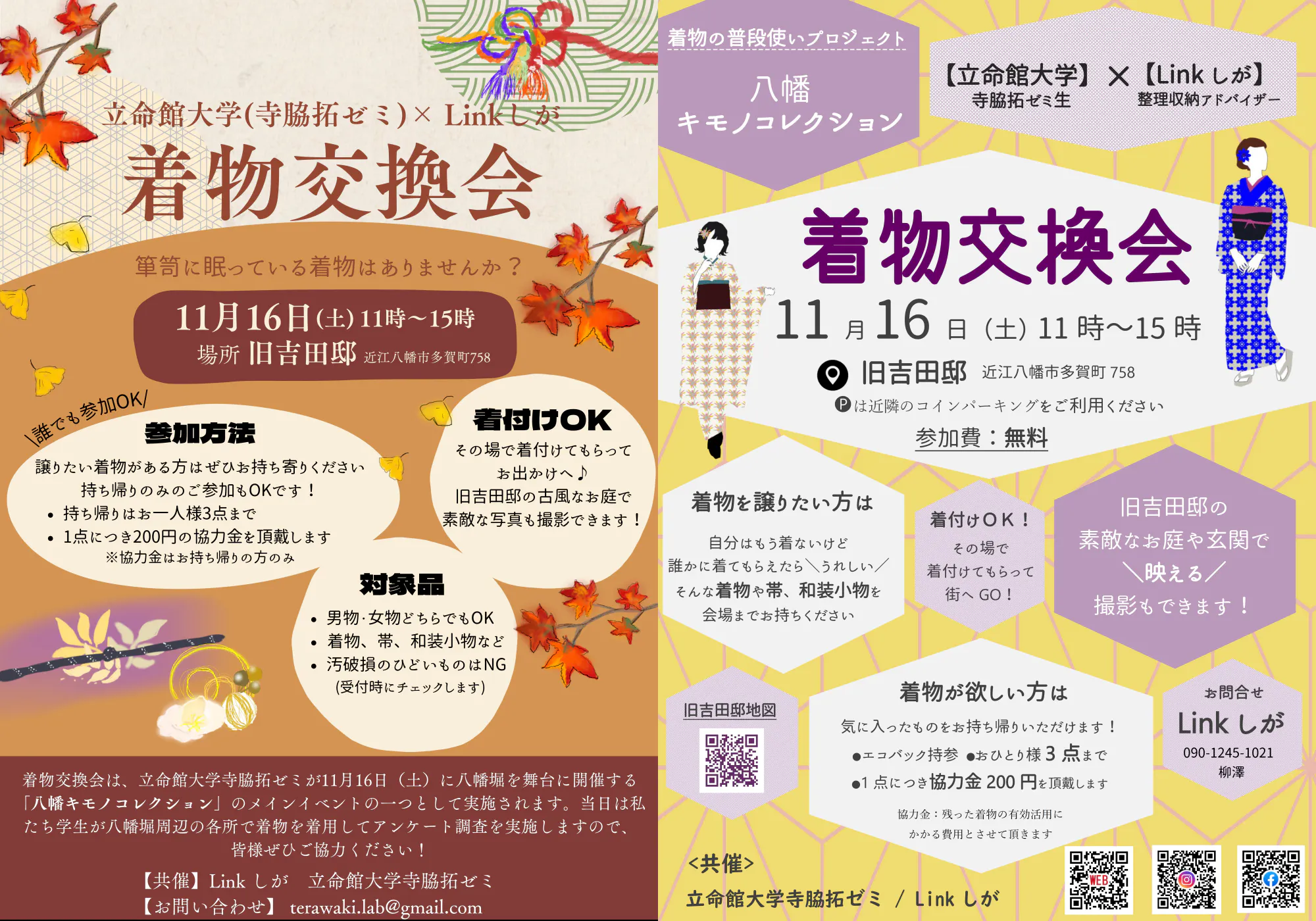 整理収納アドバイザー集団、Linkしがさんとの共催で、旧吉田邸にて着物の交換会を開催します!