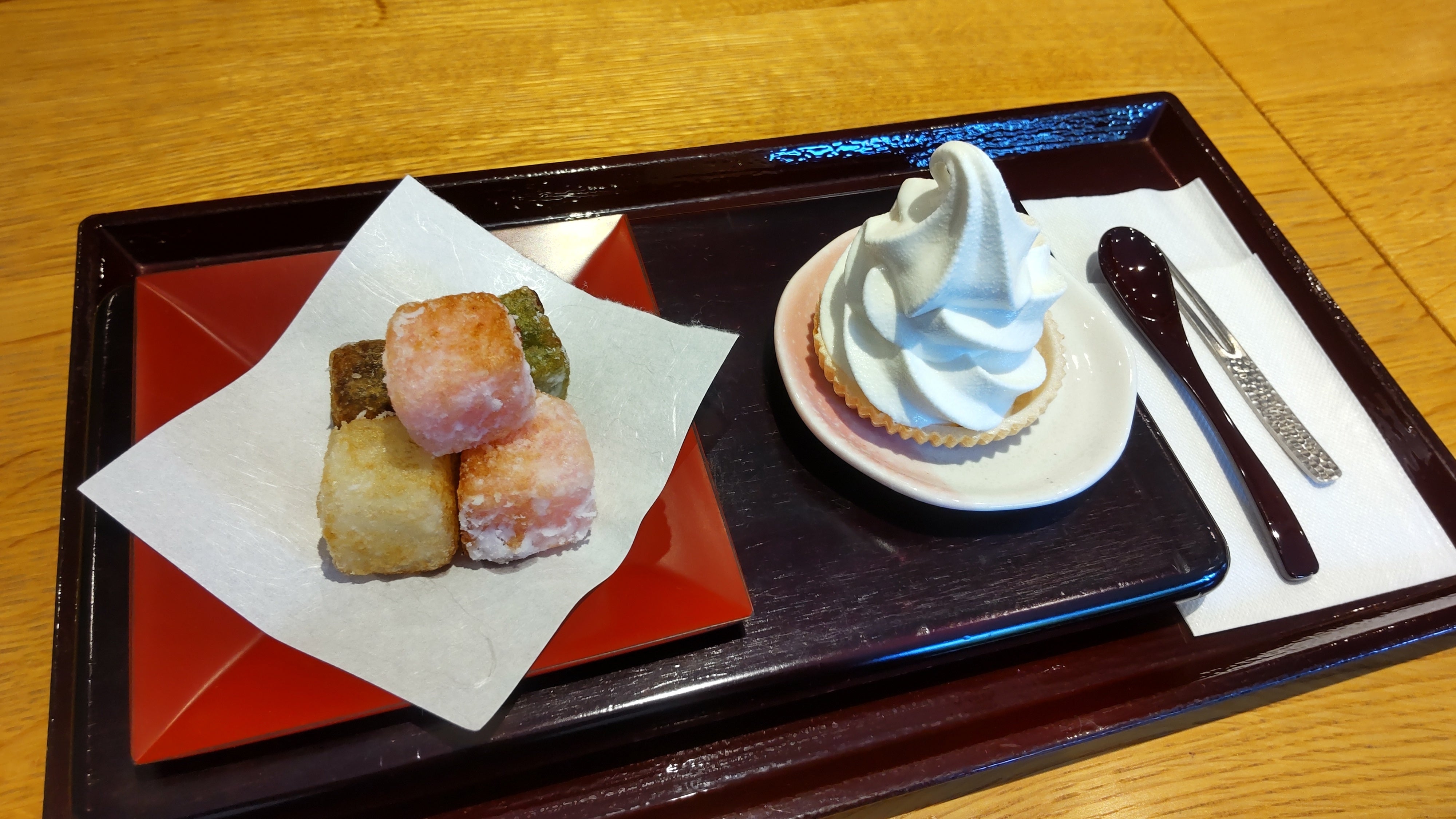 明治橋あまなさんの「あつあつ揚げういろとプチソフト」