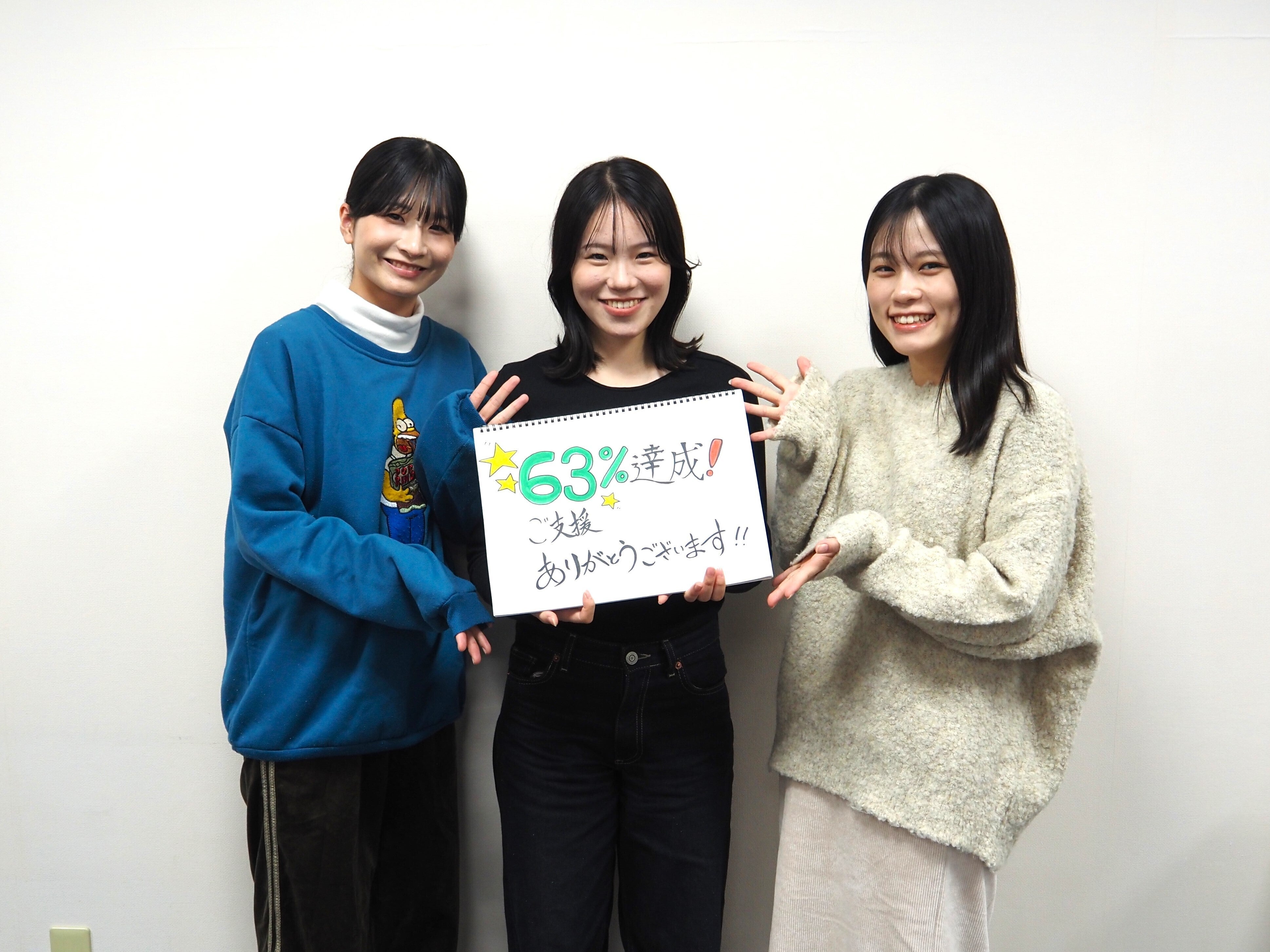 支援金が目標額の63%に達しました!ご支援いただいた皆様、誠にありがとうございます!