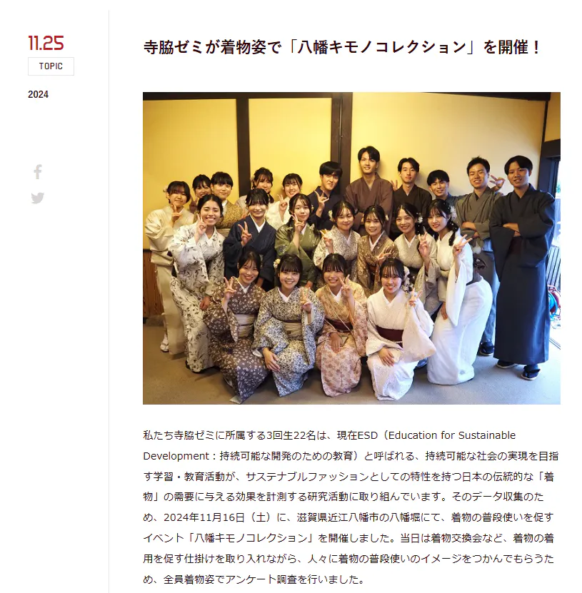 本学経済学部のホームページで、11月16日に開催した「八幡キモノコレクション」の紹介記事が上げられました!