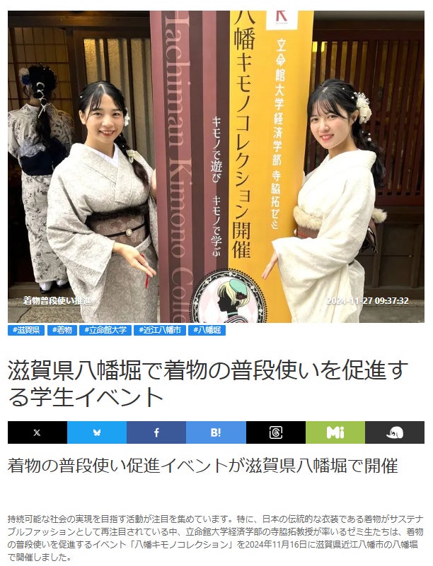 サードニュース様に記事にしていただきました!▶滋賀県八幡堀で着物の普段使いを促進する学生イベントぜひご覧ください!