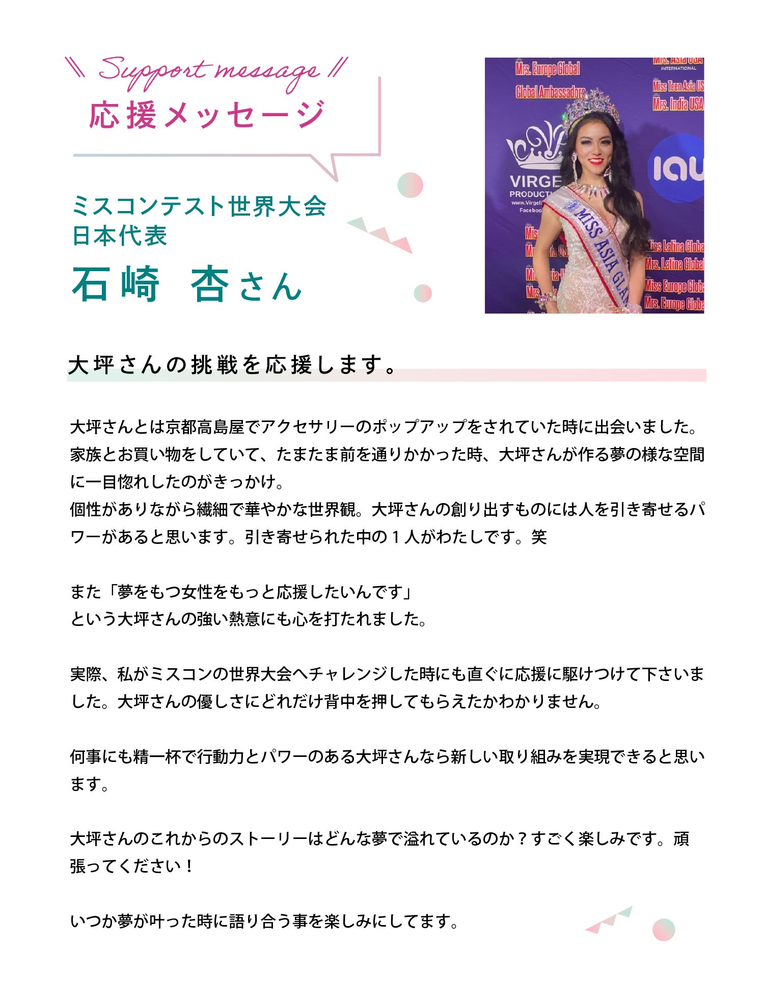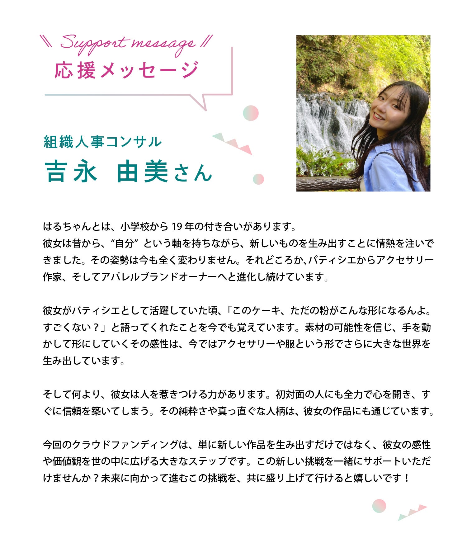 こんにちは!このプロジェクトのオーナーを務める大坪春香です。