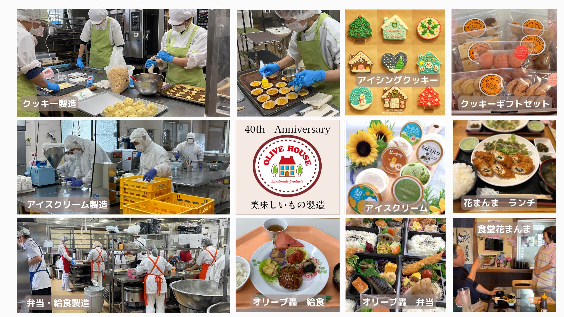 障害のある方の就労と自立を支援してオリーブは今年で創立40周年です。これからも障害のある方々の「地域で暮らし、地域で働く」ことを目指し、障害のある方と共に歩み続けます。
