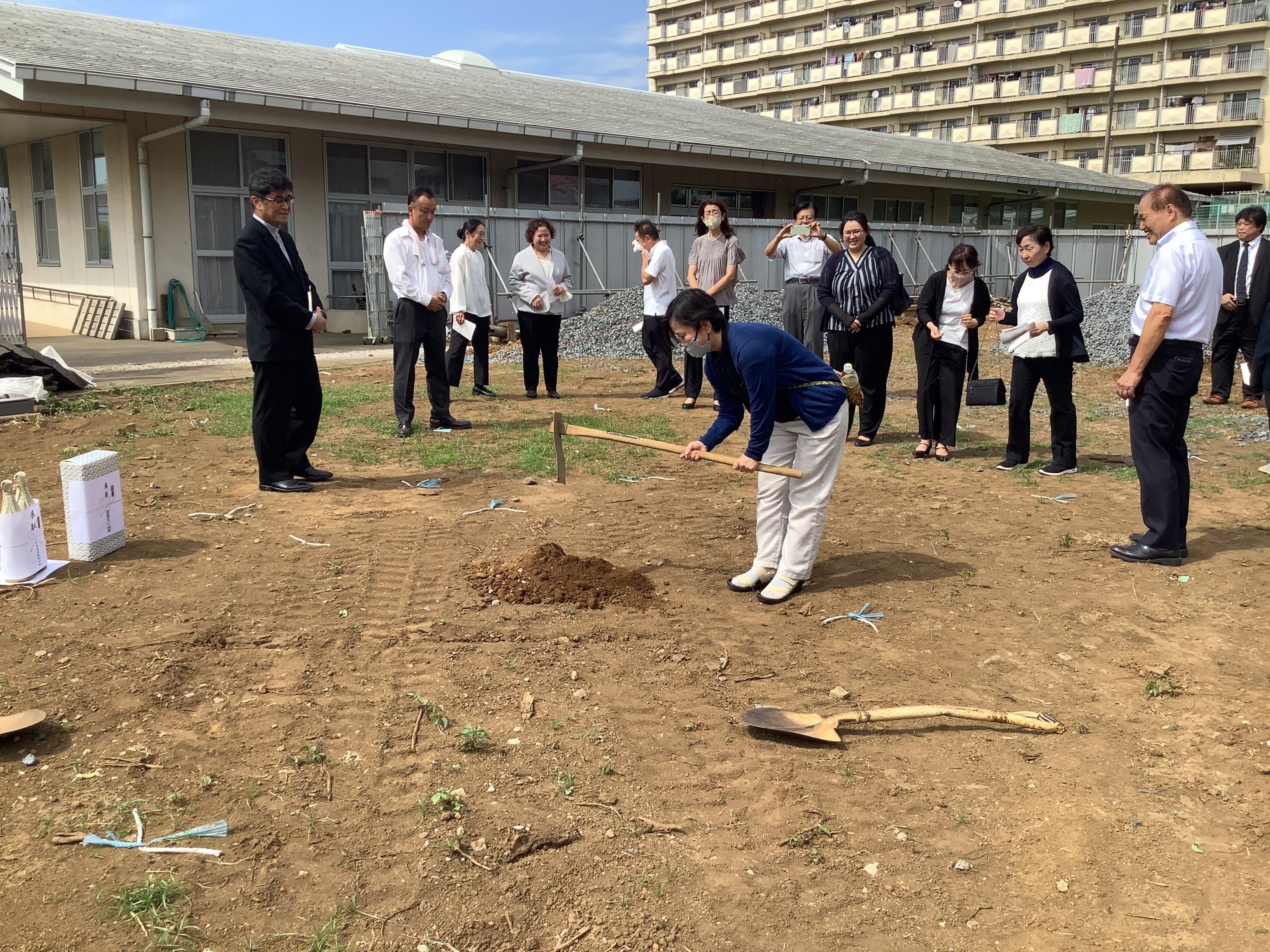 牧師の方、理事長夫妻、当法人職員11名、建設会社の方が参加し、施設建設の安全を祈願しました。