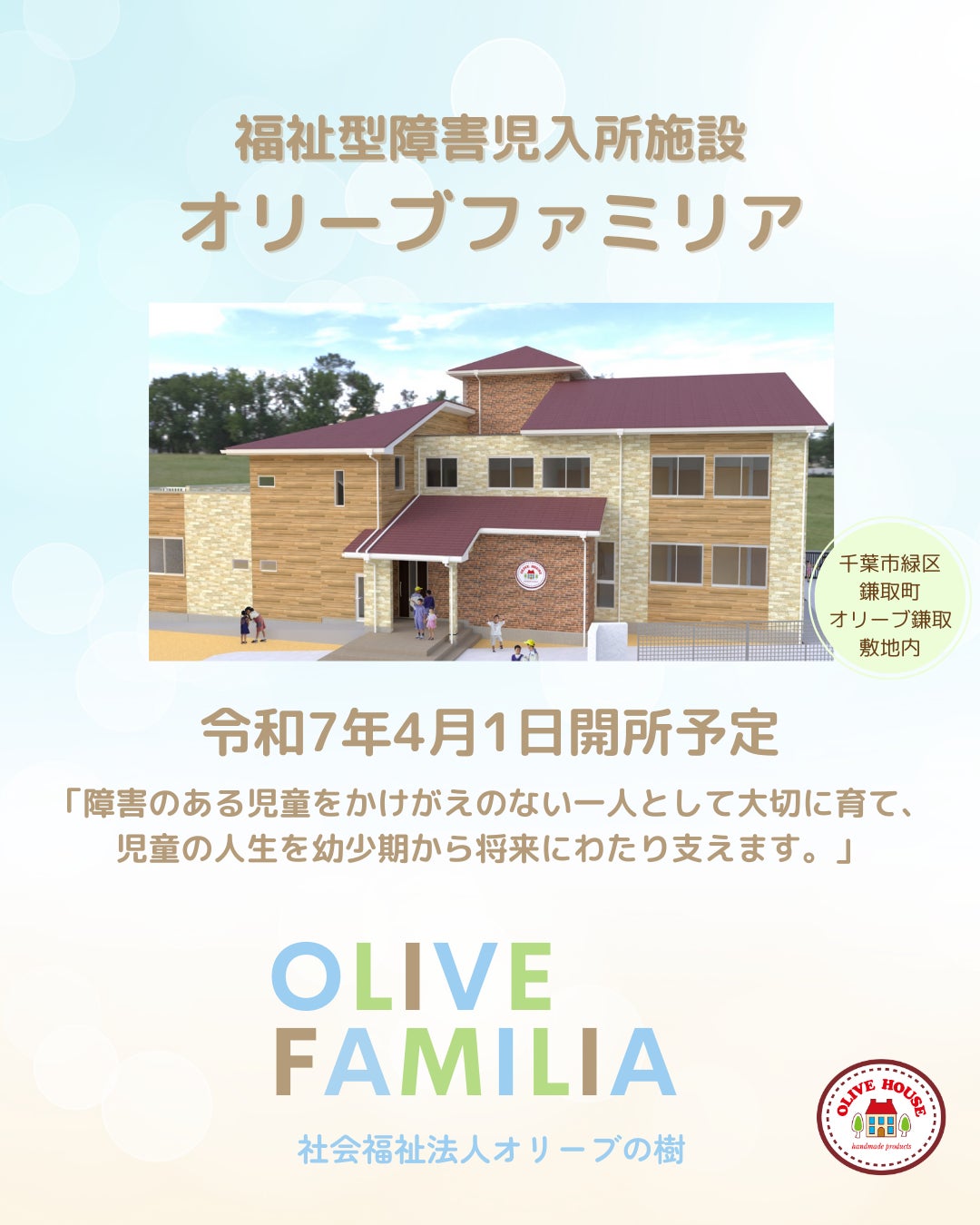 4月1日 福祉型障害児入所施設「オリーブファミリア」開所予定