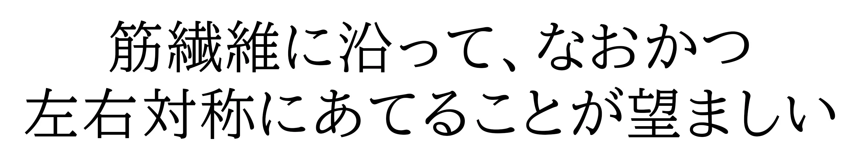 ミニほぐし屋さんを貼る際、気持ちいいと感じるところに貼ることでも十分効果はあるのですが、筋繊維にそって貼ることで、効果が出やすくなります。