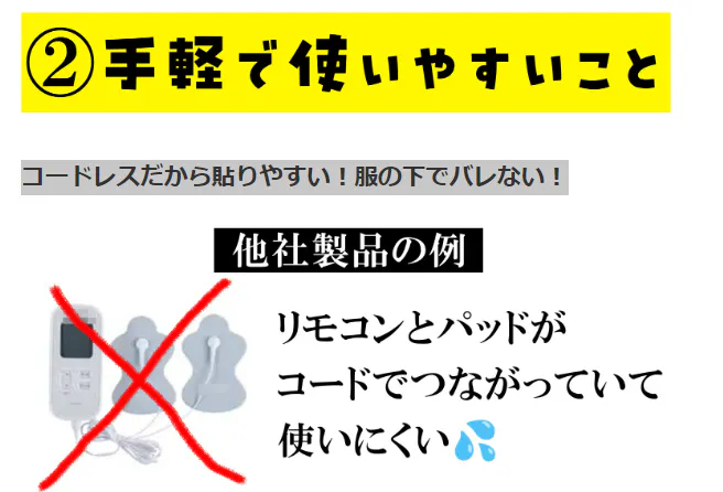 コードレスだから貼りやすい!服の下でバレない!
