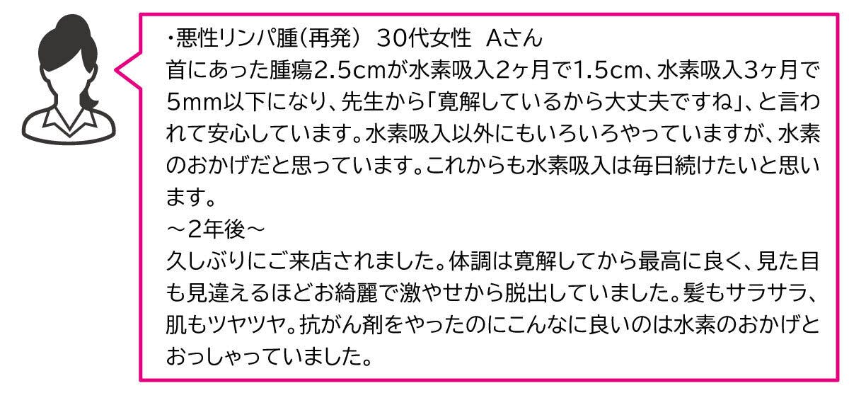 上記で述べた通りの効果がありますが、今まで当社で水素ガス吸入をした方の声を一部載せたいと思います。