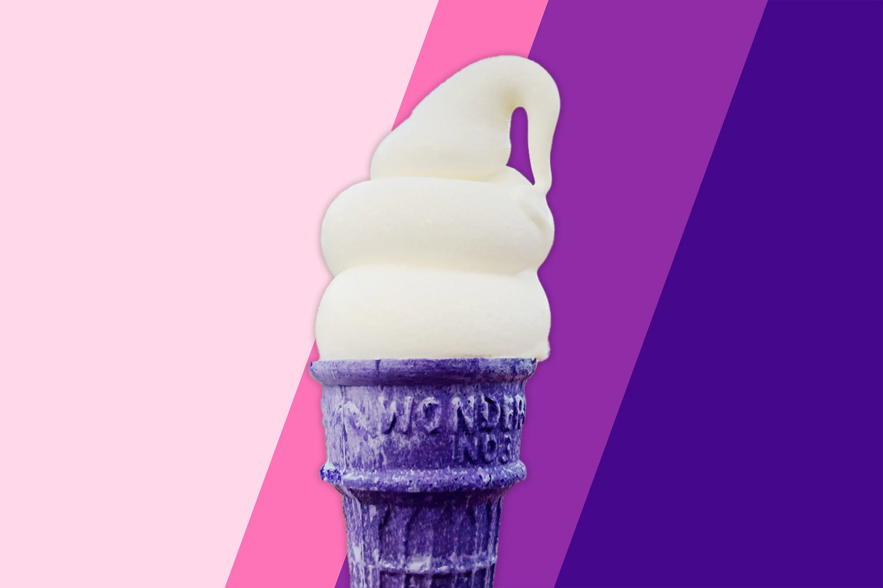 沖縄の伝統食材・紅芋を使った鮮やかな紫色のコーン。