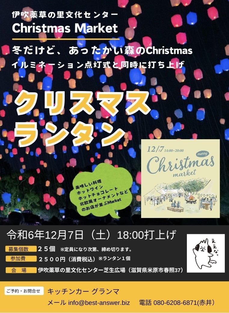 12月7日(土)米原市 伊吹薬草の里文化センターで開催される『Christmas market〜冬だけど、あったかい森のクリスマス〜』のなかで、クリスマスランタンを打ち上げませんか?