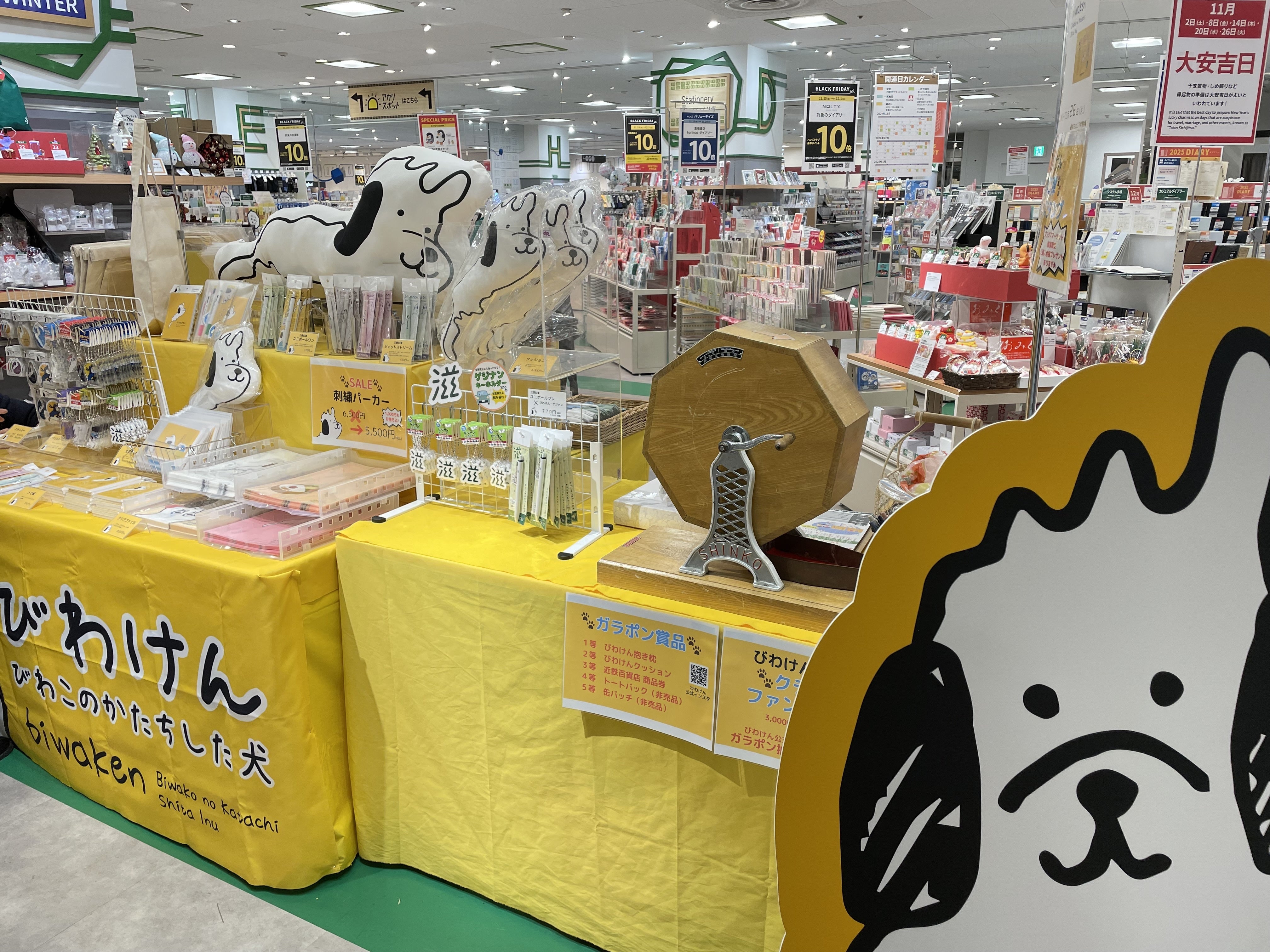11/20(水)〜26(火)近鉄百貨店草津店に催事出店させていただきます。2階プラグスマーケットです。びわけんグッズの販売の他に、ガラポン抽選やプレゼント企画もご用意してお待ちしております♪ガラポンとプレゼント企画は、お世話係が出勤する11/20,22,23,24,26のみとなります。お待ちしておりますo(^▽^)o
