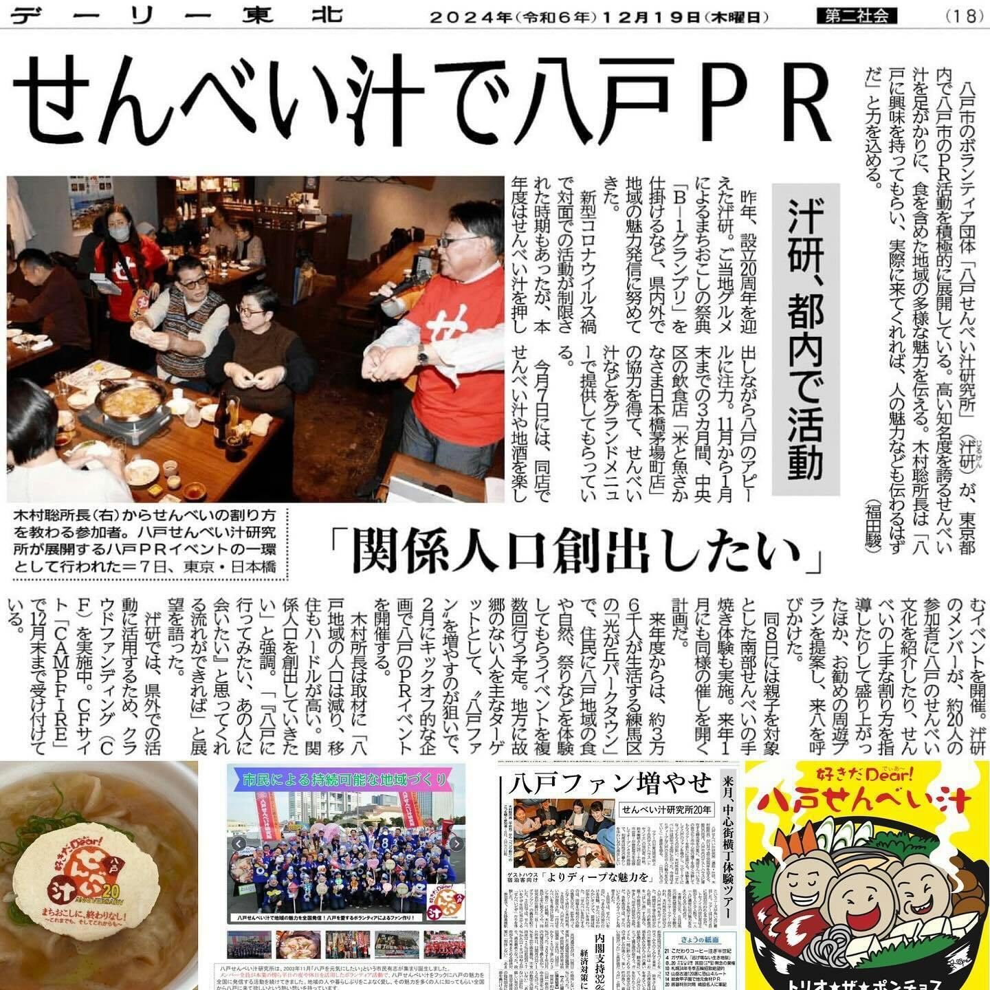 12/19(木)の地元紙(デーリー東北)に、汁゛研が今取り組んでいる東京での活動を掲載していただきました!(新聞なのにちゃんと!?「汁゛研」って濁点が付いた汁”汁”を連呼してくれてる/笑。ちなみにデジタル版は濁点なしの「汁研」だけど涙) ← ポイントはそこじゃない笑