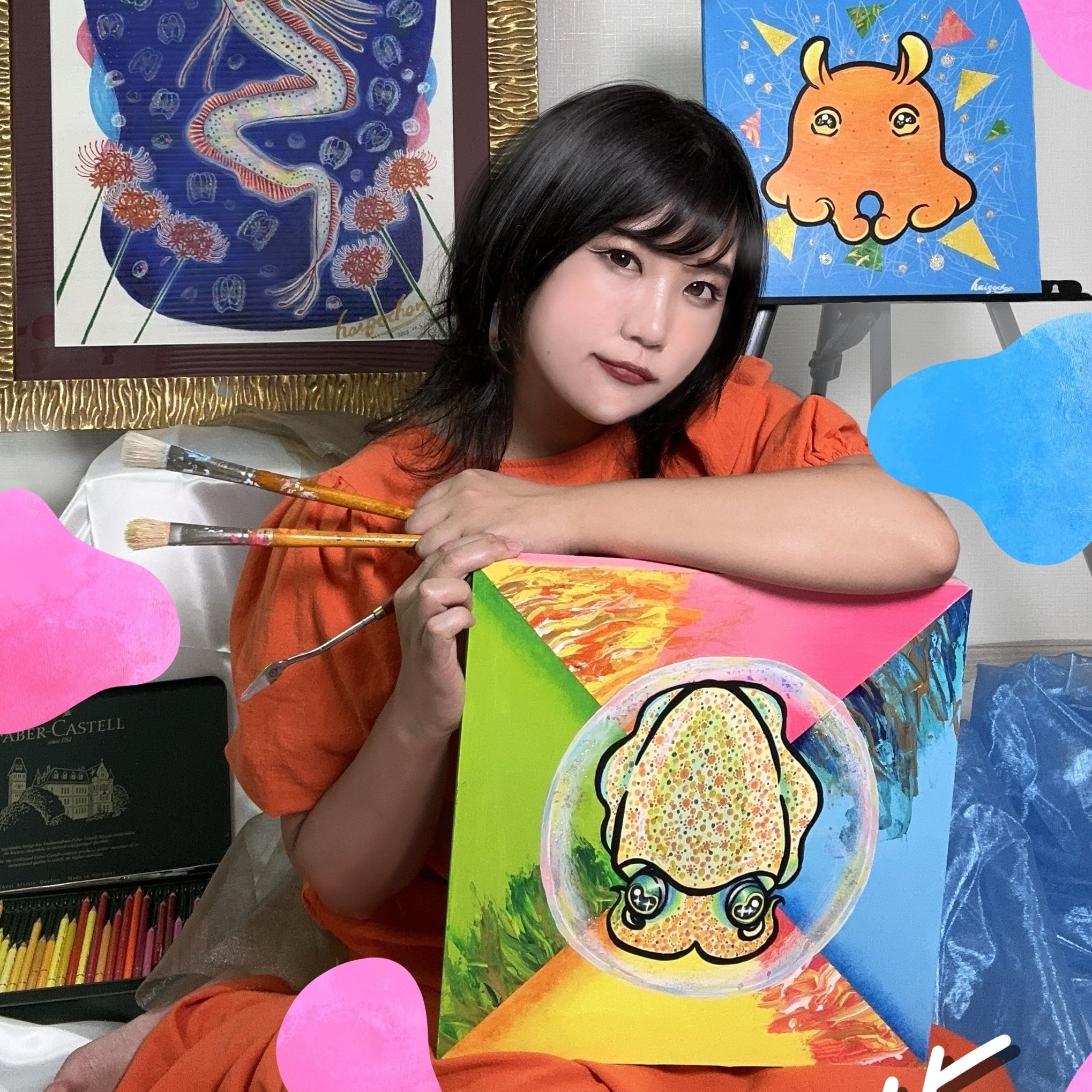 ゆるきもかわいいをコンセプトにオリジナルのカラフルなキャラクターを描いてます。