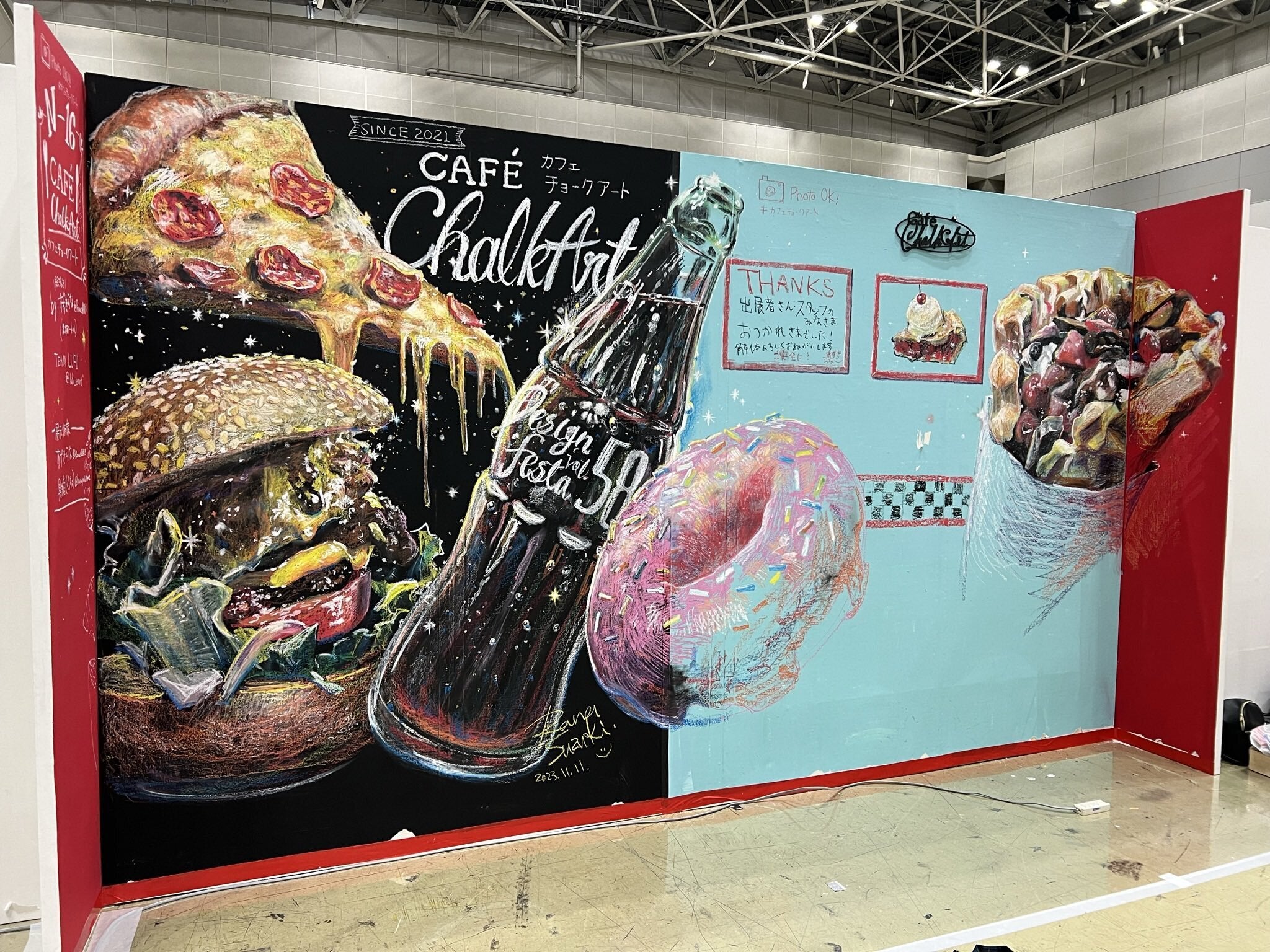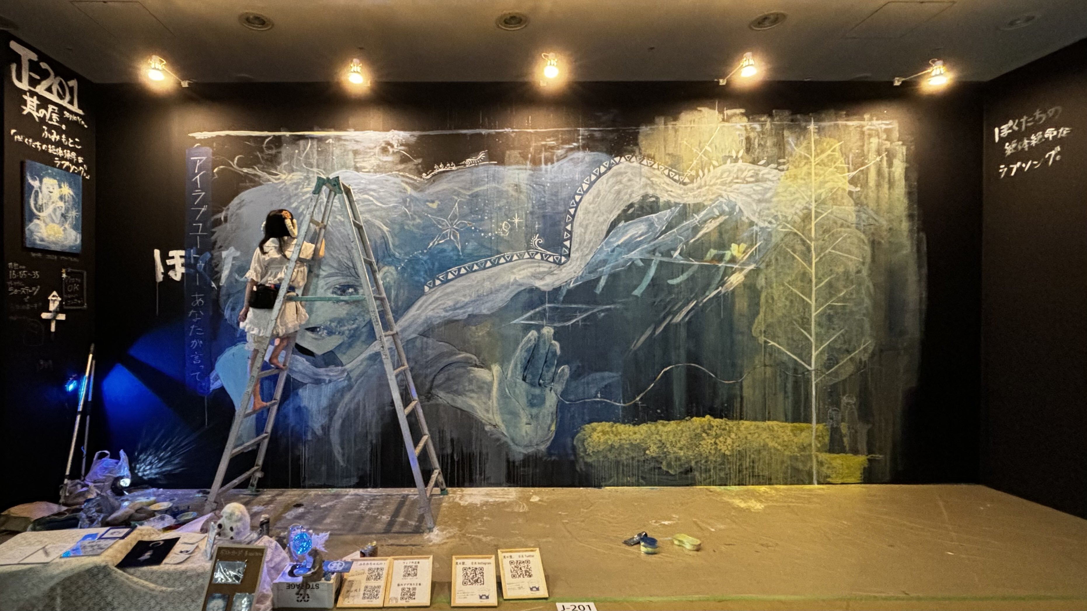 イベントは筆ロックやデザフェスに参加。現在はチョークアートのプロとして修行中。