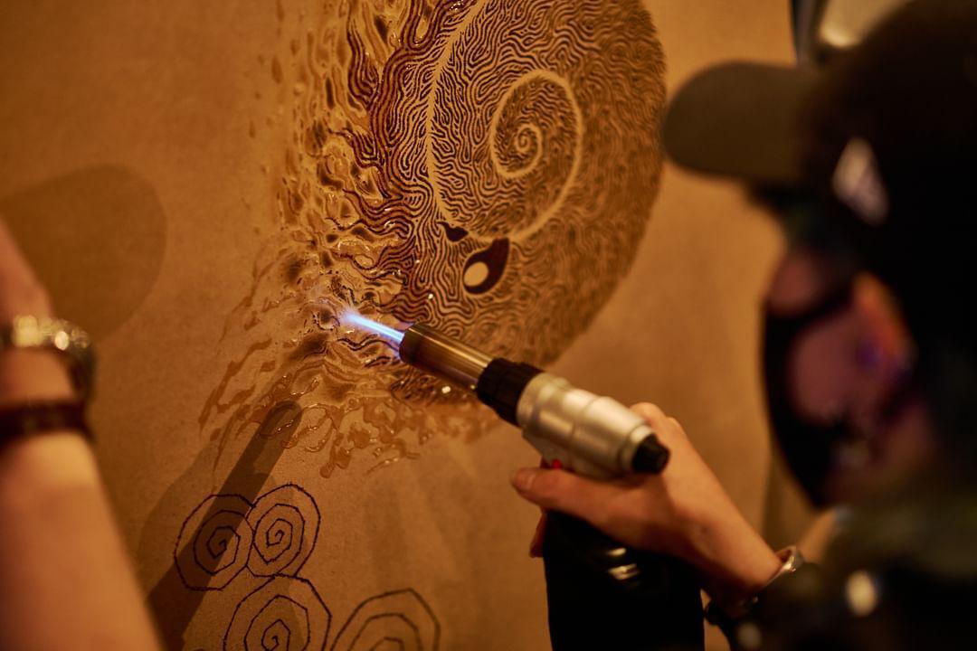 見る側は、アート作品が完成するまでのプロセスを生で目にすることで、