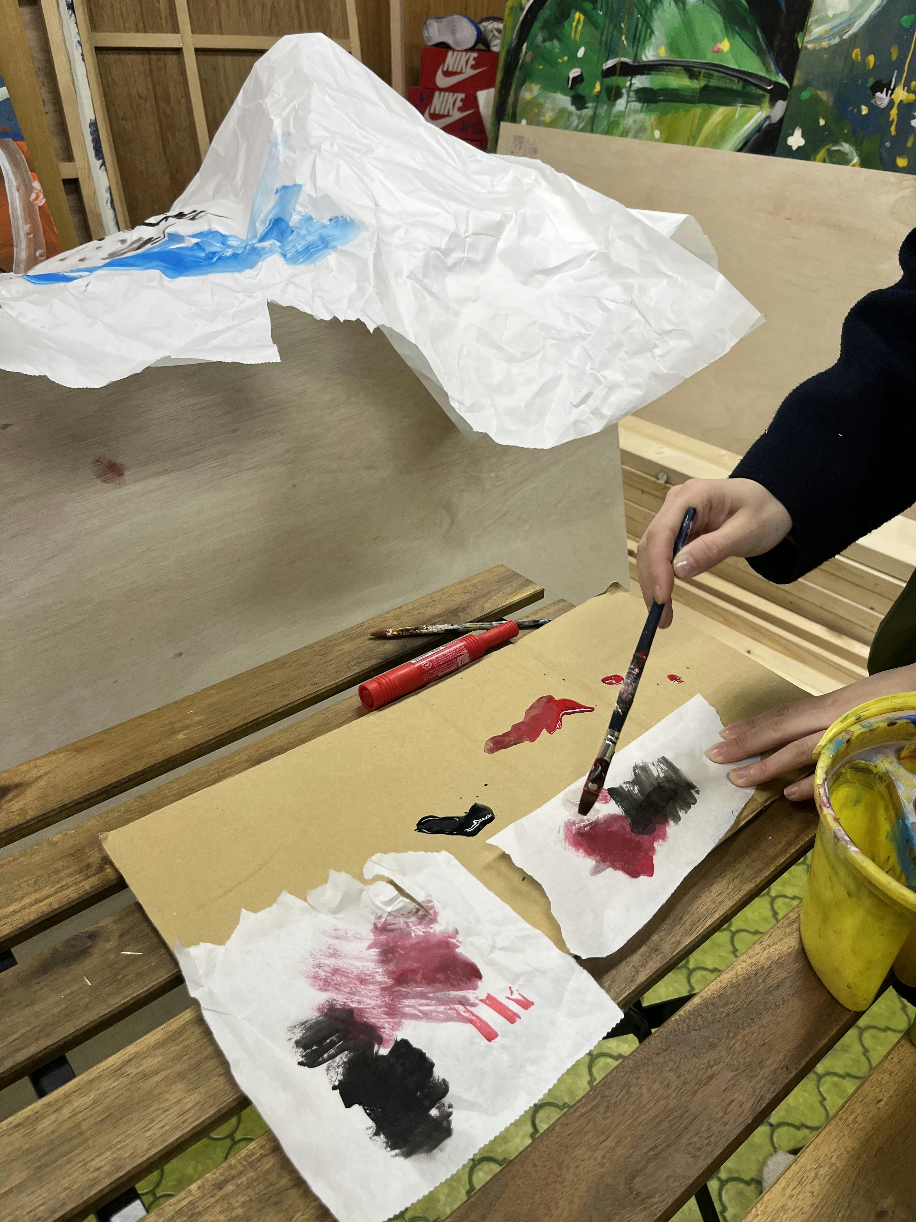 いろいろな画材を使って、描き心地や、水を使ったときの滲み具合、