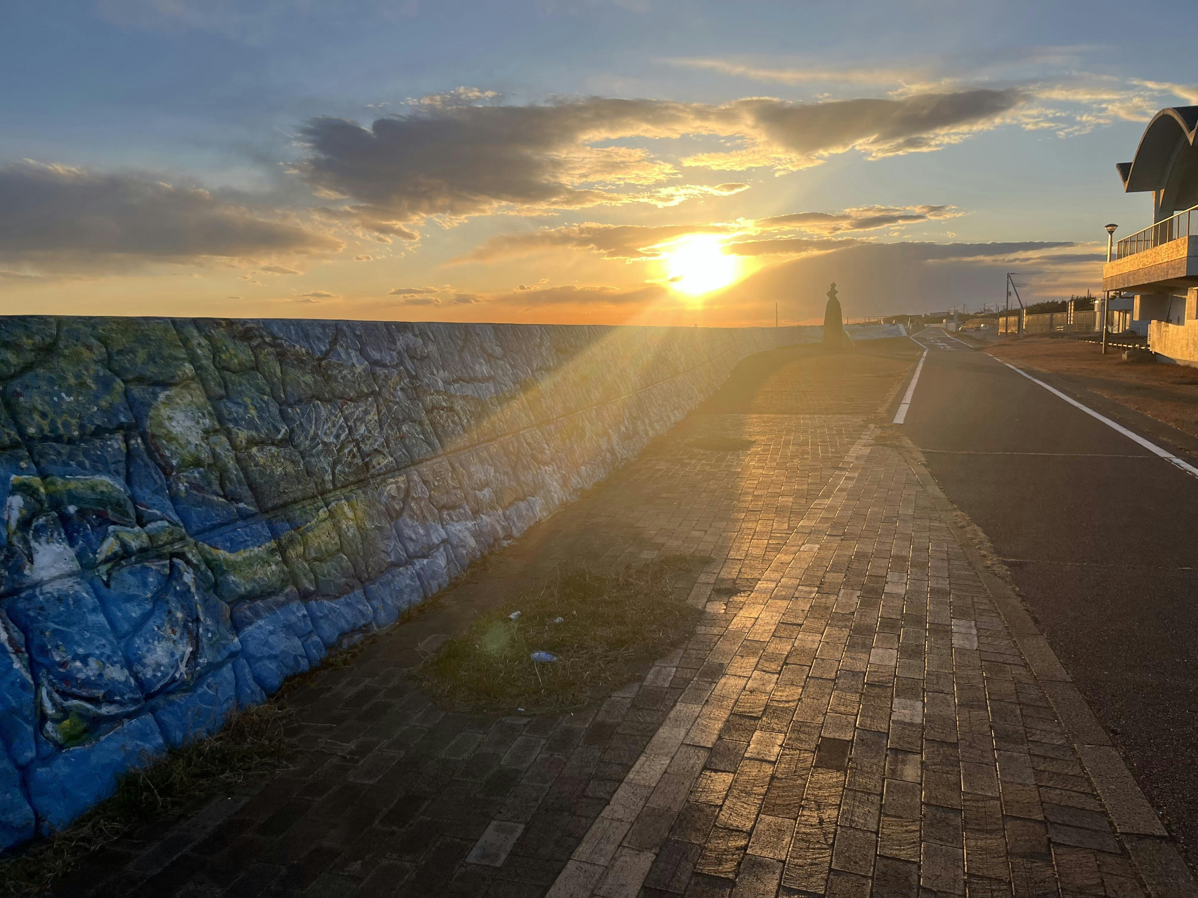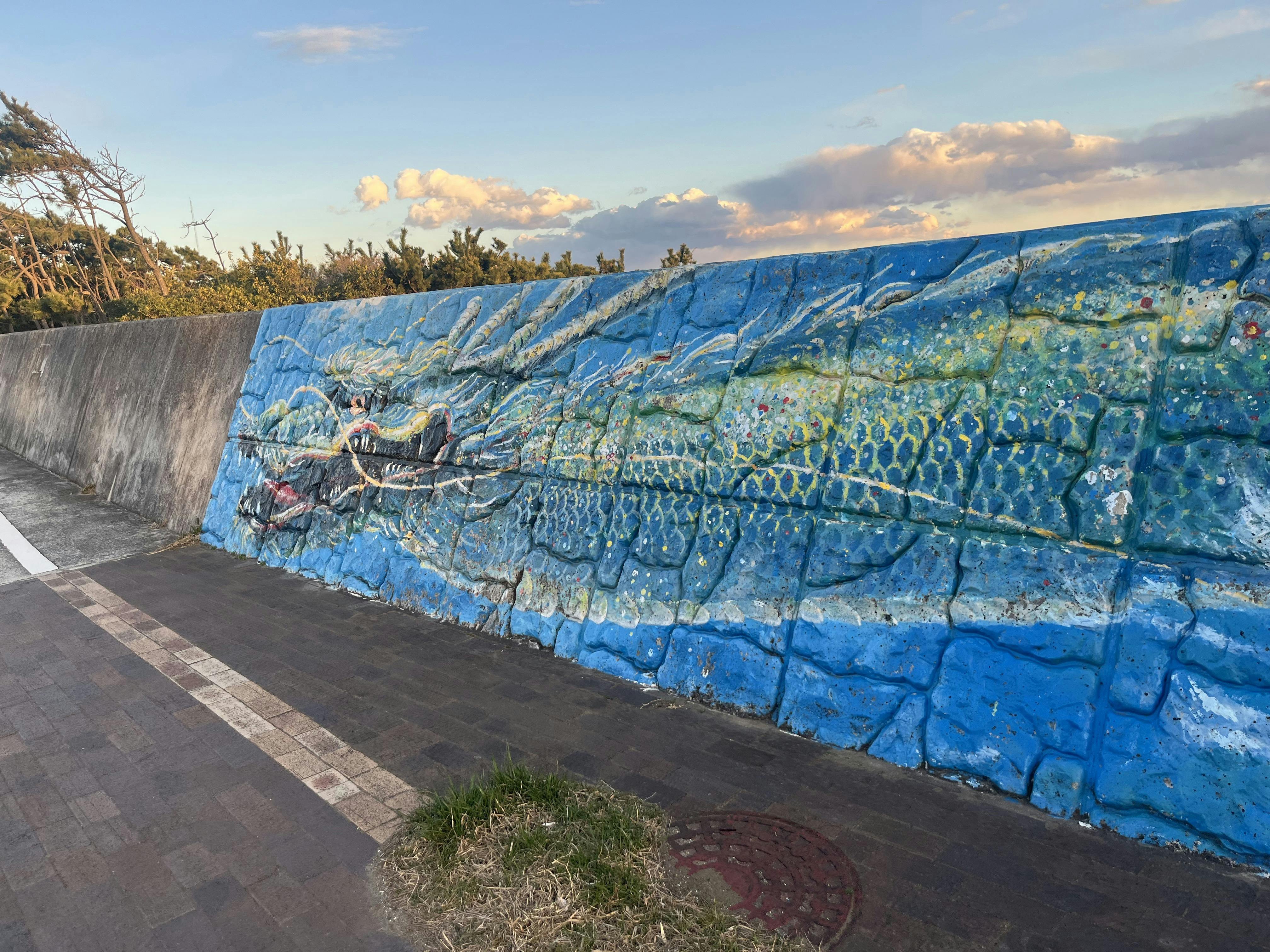 帰り道には千葉県旭市の海岸沿いの防波堤にある、