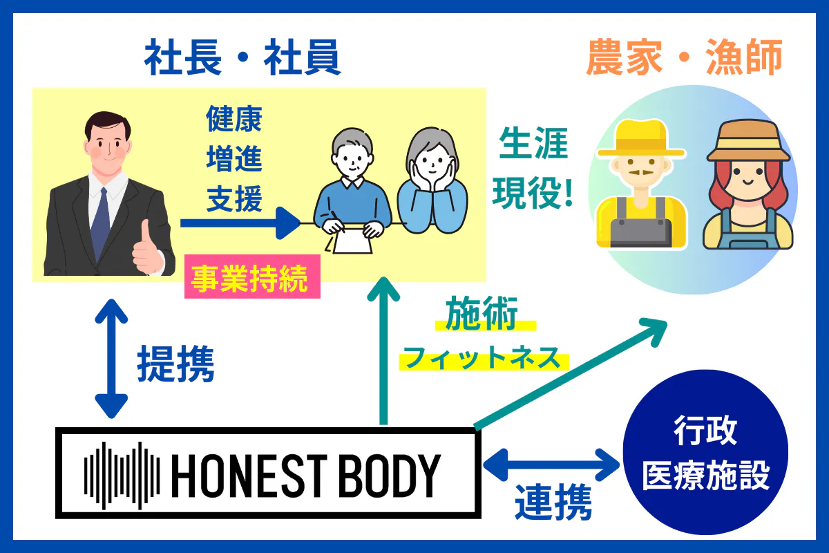 HONEST BODYでは、香美町役場の健康課、医療施設と連携しており、退院された方の受け入れ先としての役割も持たせていただいています。