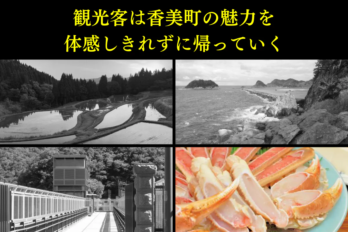 そして、大阪からカニを食べに観光にやってきたYファミリーは、地域自慢の自然・景色や町民だけが知るスポットの情報を得る手段がなく、スッと帰路についてしまいます。
